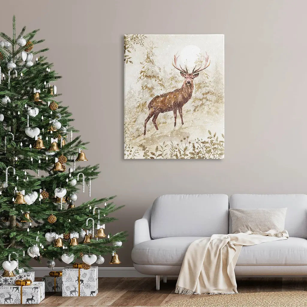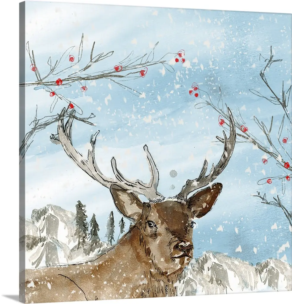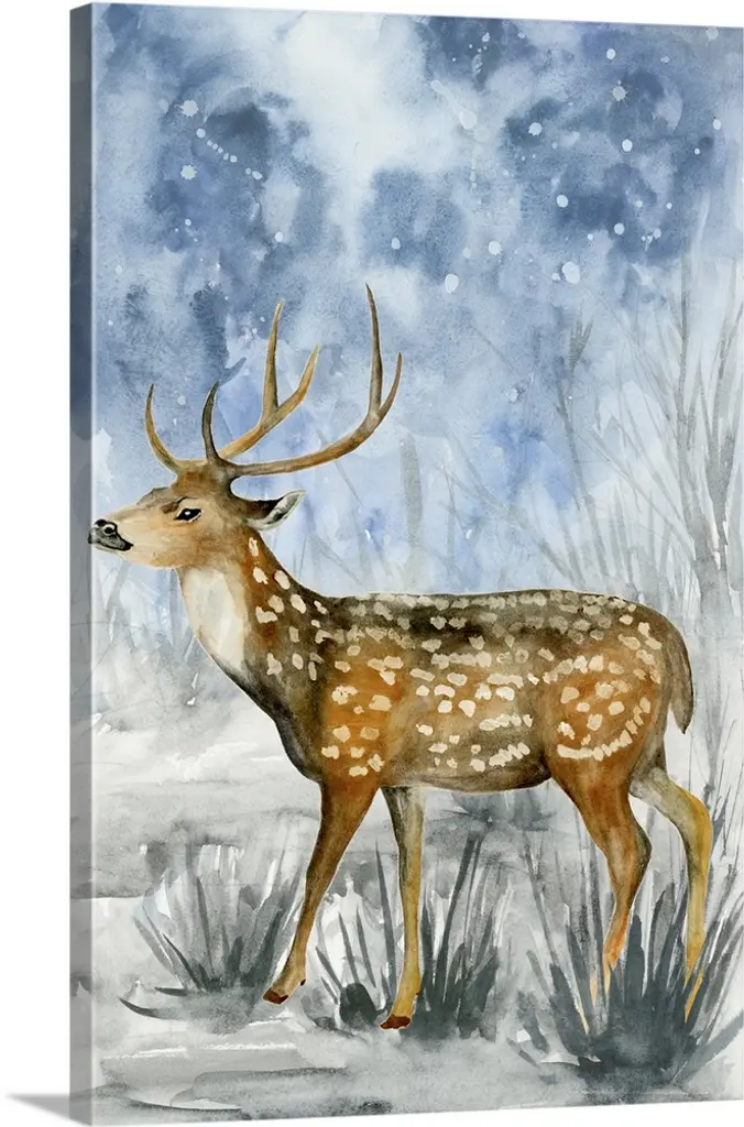 We create our stretched canvas to the highest standards. Using only the highest quality inks and canvas on Mimaki printers, we hand-cut and stretch each piece over a 1.5-inch thick wooden frame for hanging. As a result, the art comes ready to hang on the sturdy ledge with no installation required. Stupell Wall Art is made in the USA.Features: Dimensions: 16 x 1.5 x 20 InchesStretched Canvas Sizes Include Standard: 16 x 1.5 x 20 Large: 20 x 1.5 x 30 X-Large: 30 x 1.5 x 40 Oversized: 36 x 1.5 x 48Wall Art is Ready to Hang - No Installation or Hardware Needed. For Easy Set Up Lean or Layer Artwork on Shelf or Against Wall.Our stretched canvas is created with the highest standards. We use only the highest quality inks and canvas on our in house Mimaki printers, and then hand cut and stretch each piece over a 1.5 inch thick wooden frame for hanging. Made In USA.Artwork Relates To: Animal, Deer, Mammal, Wildlife, Elk, Snow, WinterDesign by Pip Wilson