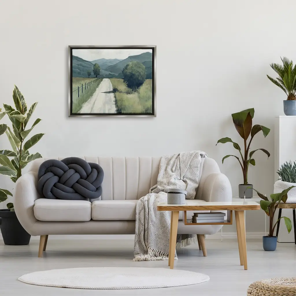 Stupell Farmland Fields Green Blue Landscape Painting Floater Frame - 24 X 30 - Grey