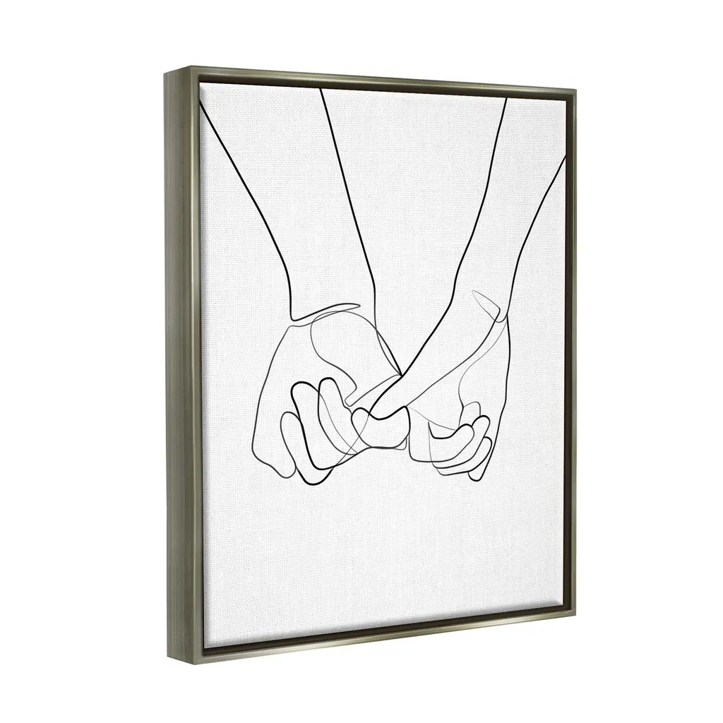 Stupell Fluid Line Abstract Couple Holding Hands Black White Floater Frame - 24 X 30 - Grey