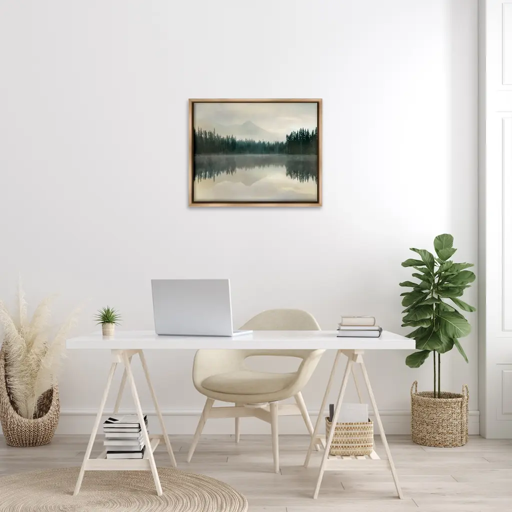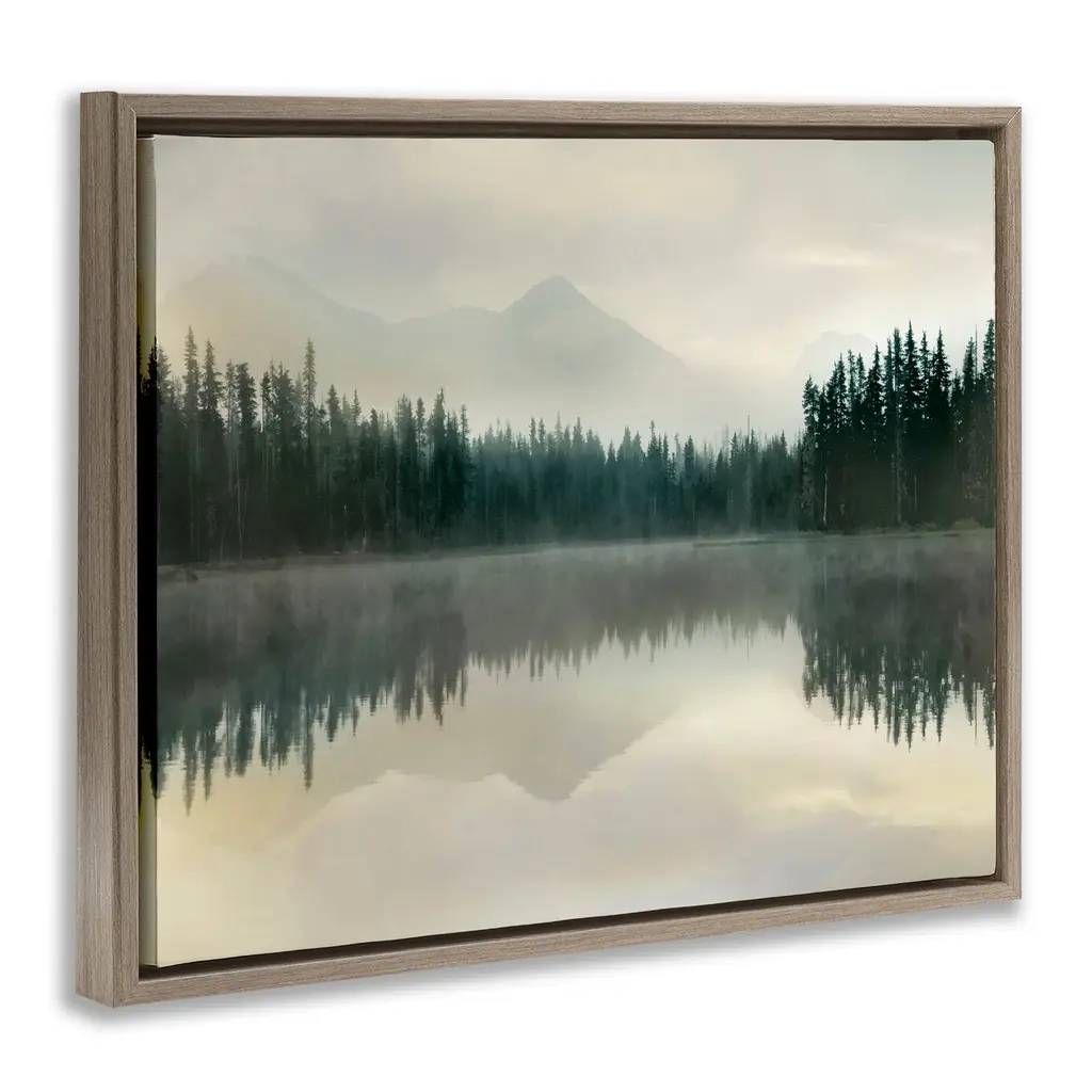 Stupell Foggy Lake Forest Landscape Soft Nature Water Reflection Floater Frame - Green - 31 X 25 - Brown
