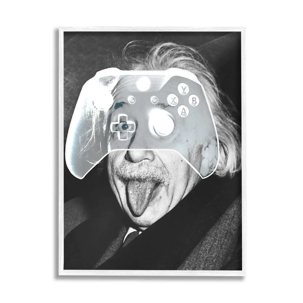 Stupell Funny Einstein Game Controller Framed Giclee Art By Lil' Rue - 16 X 20 - White