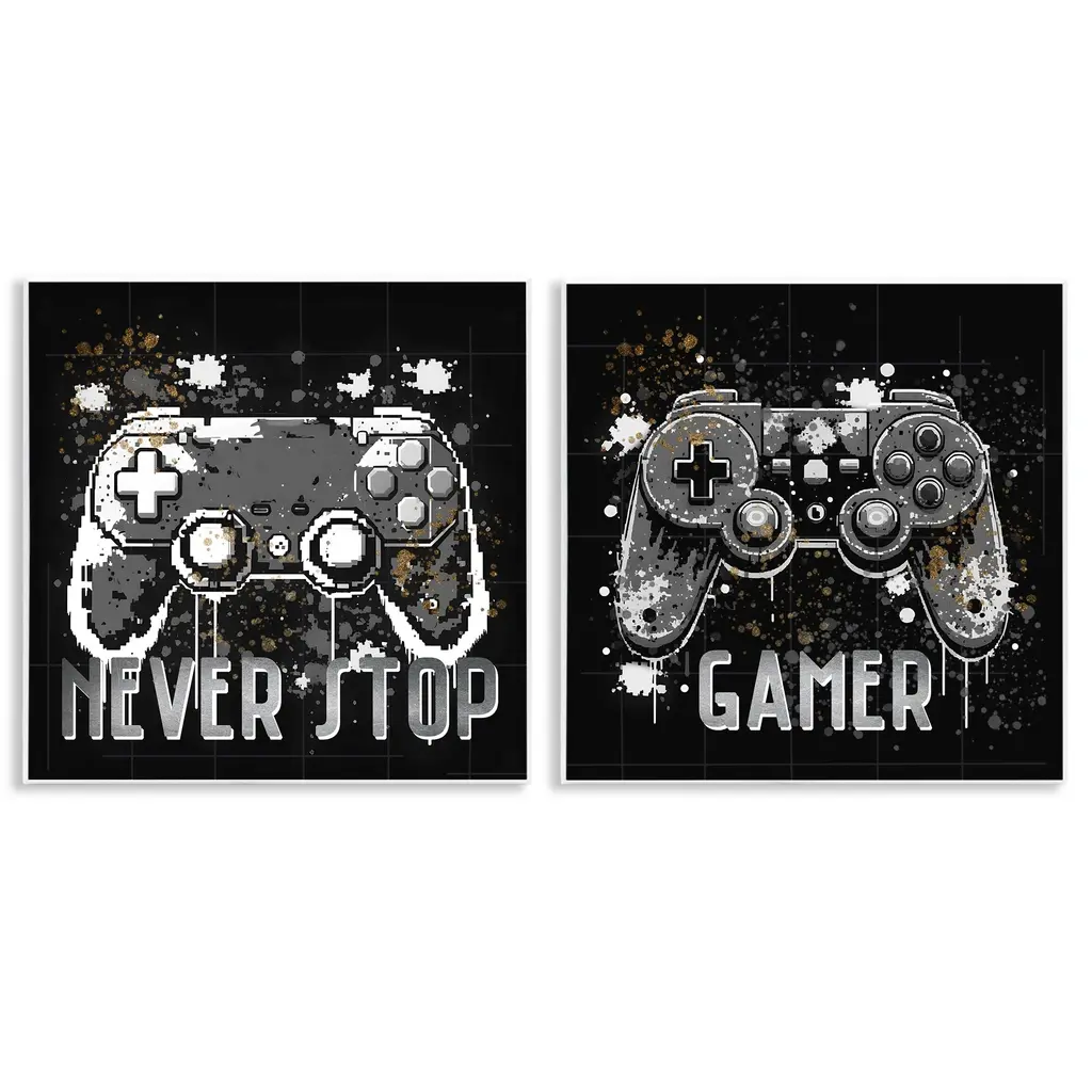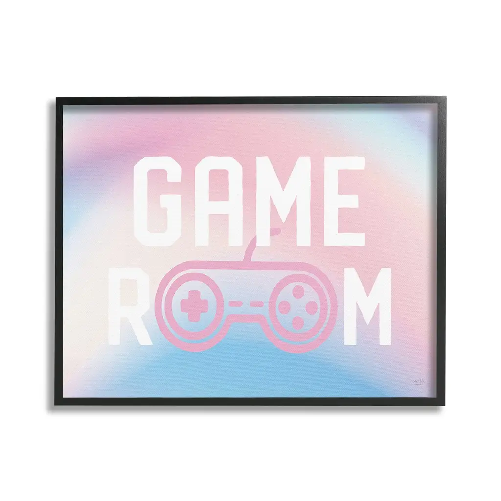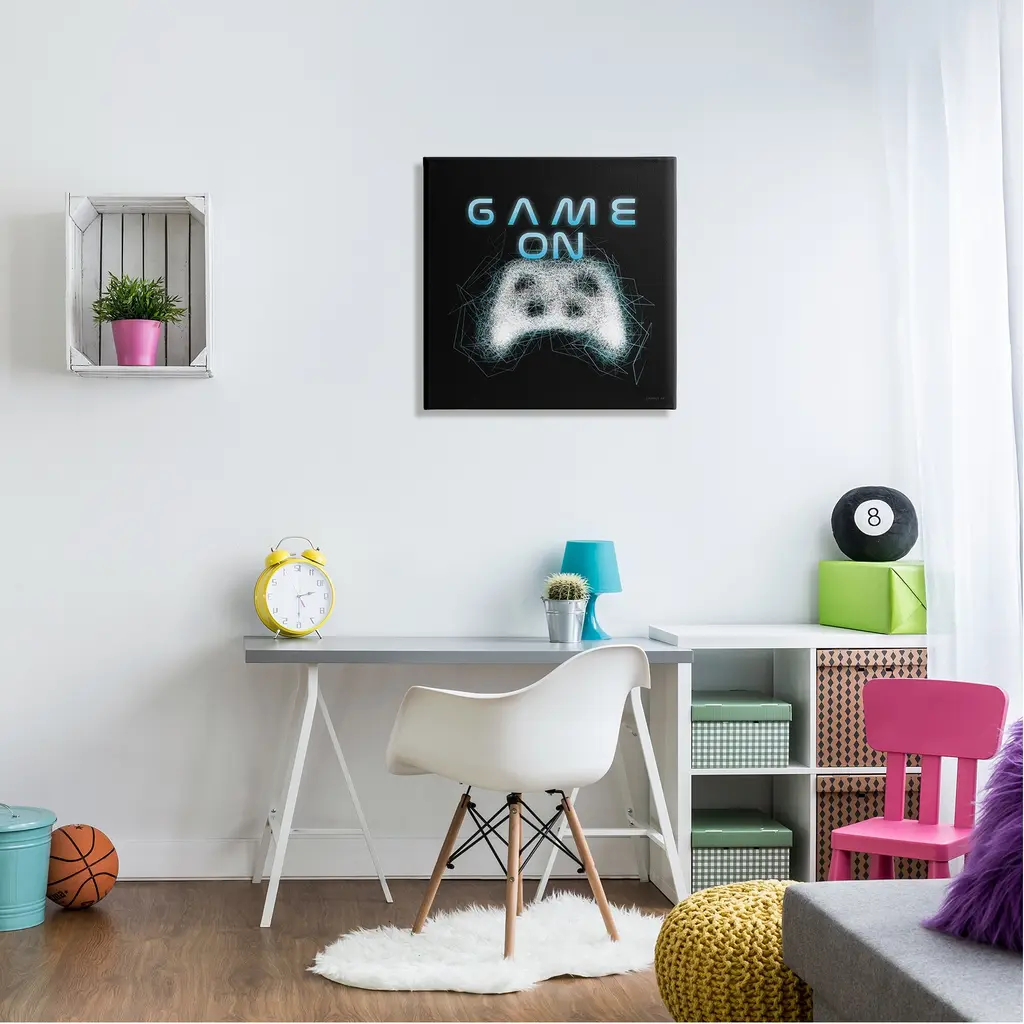 We create our stretched canvas to the highest standards. Using only the highest quality inks and canvas on Mimaki printers, we hand-cut and stretch each piece over a 1.5-inch thick wooden frame for hanging. As a result, the art comes ready to hang on the sturdy ledge with no installation required. Stupell Wall Art is made in the USA.Features: Dimensions: 17 x 1.5 x 17 InchesStretched Canvas Sizes Include Standard: 17 x 1.5 x 17 Large: 24 x 1.5 x 24 X-Large: 30 x 1.5 x 30 Oversized: 36 x 1.5 x 36Wall Art is Ready to Hang with Hardware Free Hanging. No installation required. For Easy Set Up Lean or Layer Artwork on Shelf or Against Wall.Our stretched canvas is created with the highest standards. We use only the highest quality inks and canvas on our in house Mimaki printers, and then hand cut and stretch each piece over a 1.5 inch thick wooden frame for hanging. Made In USA.Artwork Relates To: Gaming, Video Games, Gamer, Controller, Game OnDesign by Danhui Nai