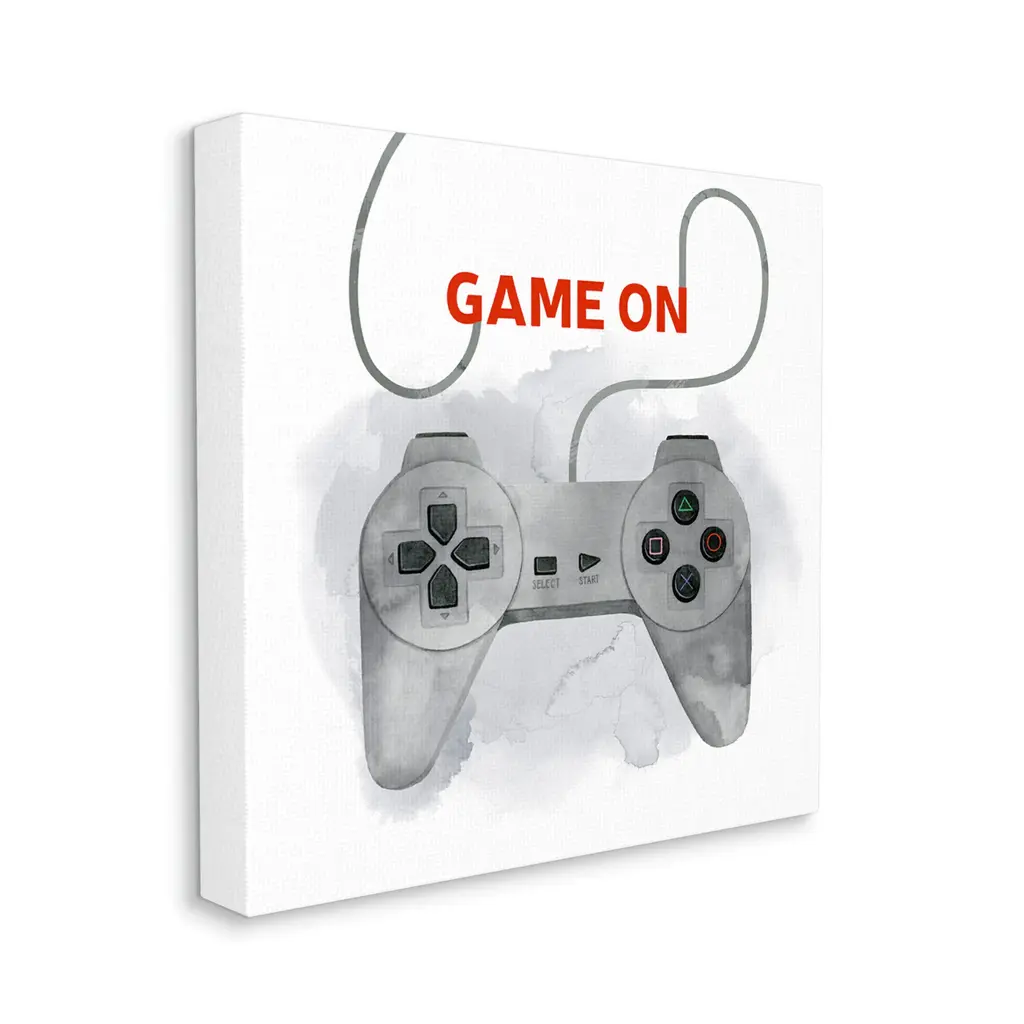 We create our stretched canvas to the highest standards. Using only the highest quality inks and canvas on Mimaki printers, we hand-cut and stretch each piece over a 1.5-inch thick wooden frame for hanging. As a result, the art comes ready to hang on the sturdy ledge with no installation required. Stupell Wall Art is made in the USA.Features: Dimensions: 17 x 1.5 x 17 InchesStretched Canvas Sizes Include Standard: 17 x 1.5 x 17 Large: 24 x 1.5 x 24 X-Large: 30 x 1.5 x 30 Oversized: 36 x 1.5 x 36Wall Art is Ready to Hang - No Installation or Hardware Needed. For Easy Set Up Lean or Layer Artwork on Shelf or Against Wall.Our stretched canvas is created with the highest standards. We use only the highest quality inks and canvas on our in house Mimaki printers, and then hand cut and stretch each piece over a 1.5 inch thick wooden frame for hanging. Made In USA.Artwork Relates To: Electronics, Joystick, Person, Video Gaming, Gaming, Video Game, Controller, Game OnDesign by Grace Popp