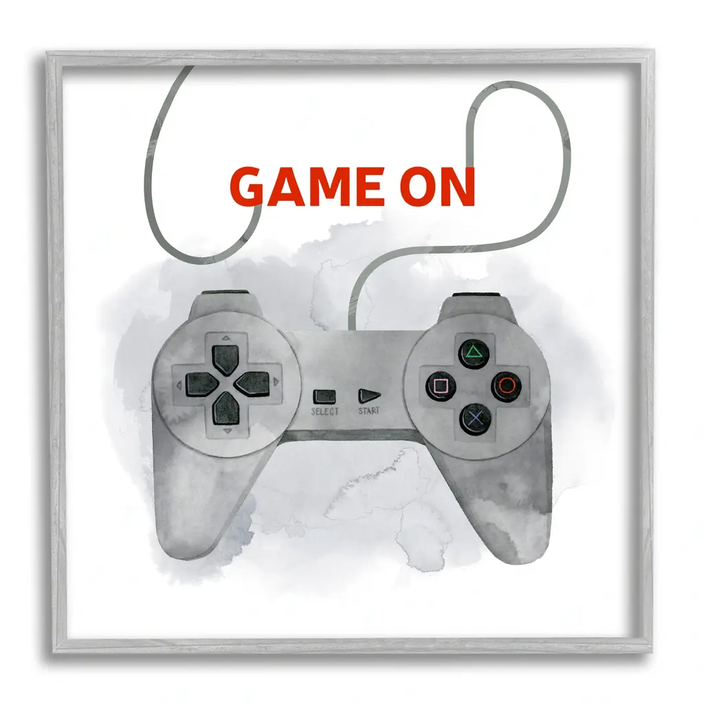 Add dimension to any room with our textured Framed Giclee Artwork. Our framed artwork is securely mounted into a 1.5-inch thick wood grain frame and ready to hang. Frames are available in three alluring styles: black, gray farmhouse and white. In addition, you should check out our oversized options if you want a statement piece. Stupell Wall Art is made in the USA.Features: Dimensions: 12 x 1.5 x 12 FramedFramed Giclee Sizes Include Standard: 12 x 1.5 x 12 Large: 17 x 1.5 x 17 Oversized: 24 x 1.5 x 24Wall Art is Ready to Hang - No Installation or Hardware Needed. For Easy Set Up Lean or Layer Artwork on Shelf or Against Wall.Our giclée prints are carefully mounted on a durable MDF backing, and then perfectly finished in a 1.5 inch thick woodgrain frame. Mounted frame colors include black, gray farmhouse and white. Made In USA.Artwork Relates To: Electronics, Joystick, Person, Video Gaming, Gaming, Video Game, Controller, Game OnDesign by Grace Popp