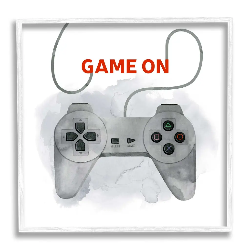 Add dimension to any room with our textured Framed Giclee Artwork. Our framed artwork is securely mounted into a 1.5-inch thick wood grain frame and ready to hang. Frames are available in three alluring styles: black, gray farmhouse and white. In addition, you should check out our oversized options if you want a statement piece. Stupell Wall Art is made in the USA.Features: Dimensions: 12 x 1.5 x 12 FramedFramed Giclee Sizes Include Standard: 12 x 1.5 x 12 Large: 17 x 1.5 x 17 Oversized: 24 x 1.5 x 24Wall Art is Ready to Hang - No Installation or Hardware Needed. For Easy Set Up Lean or Layer Artwork on Shelf or Against Wall.Our giclée prints are carefully mounted on a durable MDF backing, and then perfectly finished in a 1.5 inch thick woodgrain frame. Mounted frame colors include black, gray farmhouse and white. Made In USA.Artwork Relates To: Electronics, Joystick, Person, Video Gaming, Gaming, Video Game, Controller, Game OnDesign by Grace Popp