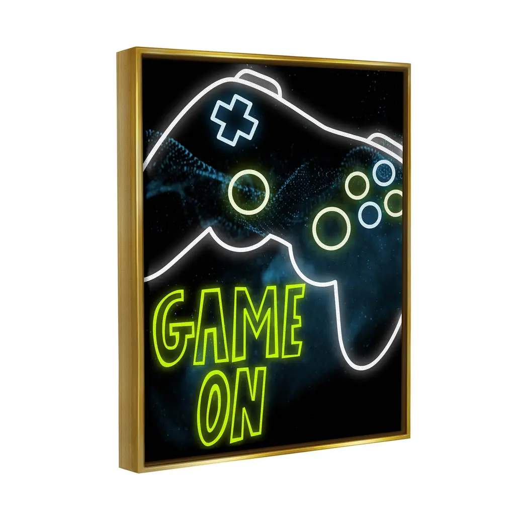Stupell Game On Neon Controller Framed Floater Canvas Wall Art, Design By Marcus Prime - 17 X 21 - Gold