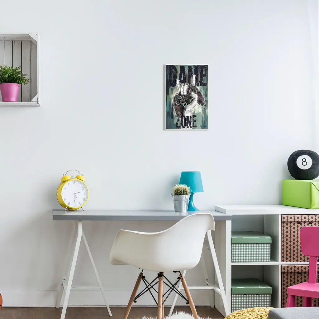 Our wall plaques start as high-quality lithograph prints mounted on durable 0.5-inch thick MDF wood. Each piece is hand finished and comes with a fresh layer of white foil on the sides to give it a crisp, clean look. Plaques arrive ready to hang without installation and come with removable plastic corners to keep them from damage in transit. Stupell Industries Wall Art is made in the USA.Features: Dimensions: 10 x 0.5 x 15 InchesWall Plaque Sizes Include Standard: 10 x 0.5 x 15 Oversized: 13 x 0.5 x 19Wall Art is Ready to Hang with Hardware Free Hanging. No installation required. For Easy Set Up Lean or Layer Artwork on Shelf or Against Wall.All of our wall plaques start off as high quality lithograph prints that are then mounted on durable 0.5 inch thick MDF wood. Each piece is hand finished and comes with a fresh layer of foil on the sides to give it a crisp clean look. Made In USA.Artwork Relates To: Hand, Joystick, Gamer, Gaming, Video Game, Controller, Game ZoneDesign by Nidhi Wadhwa