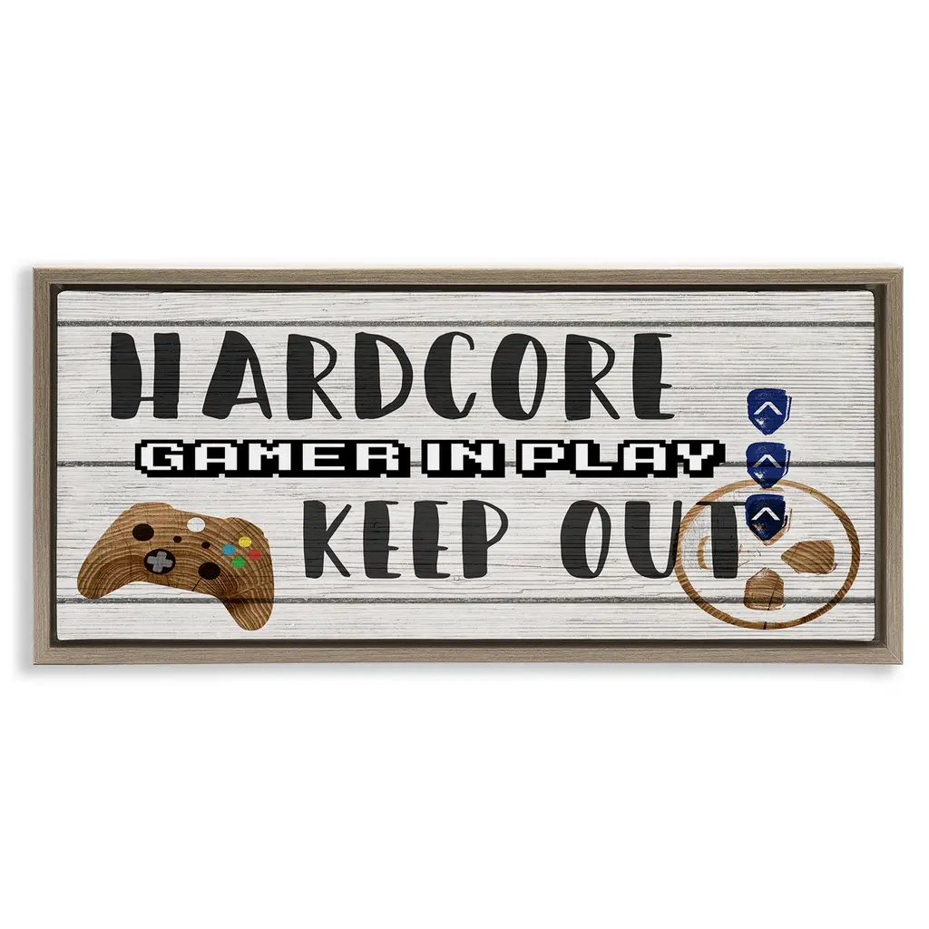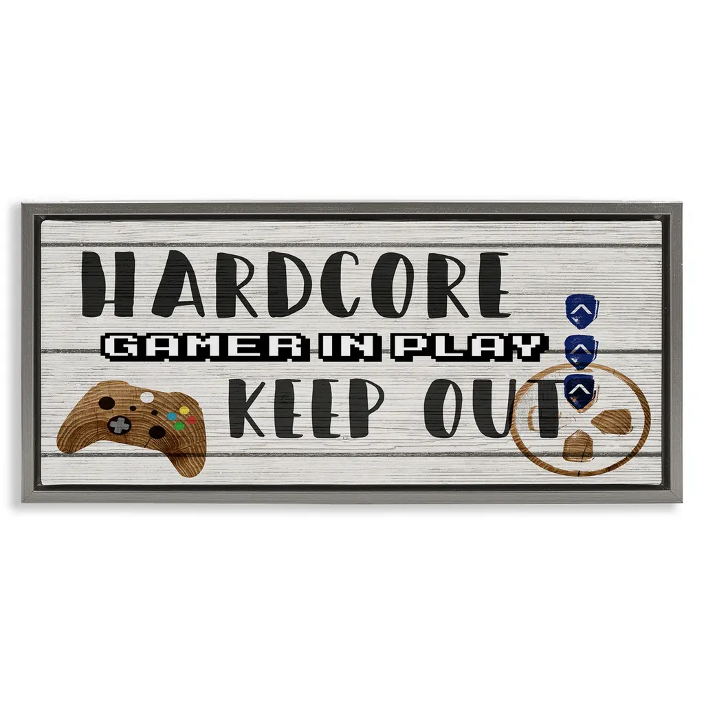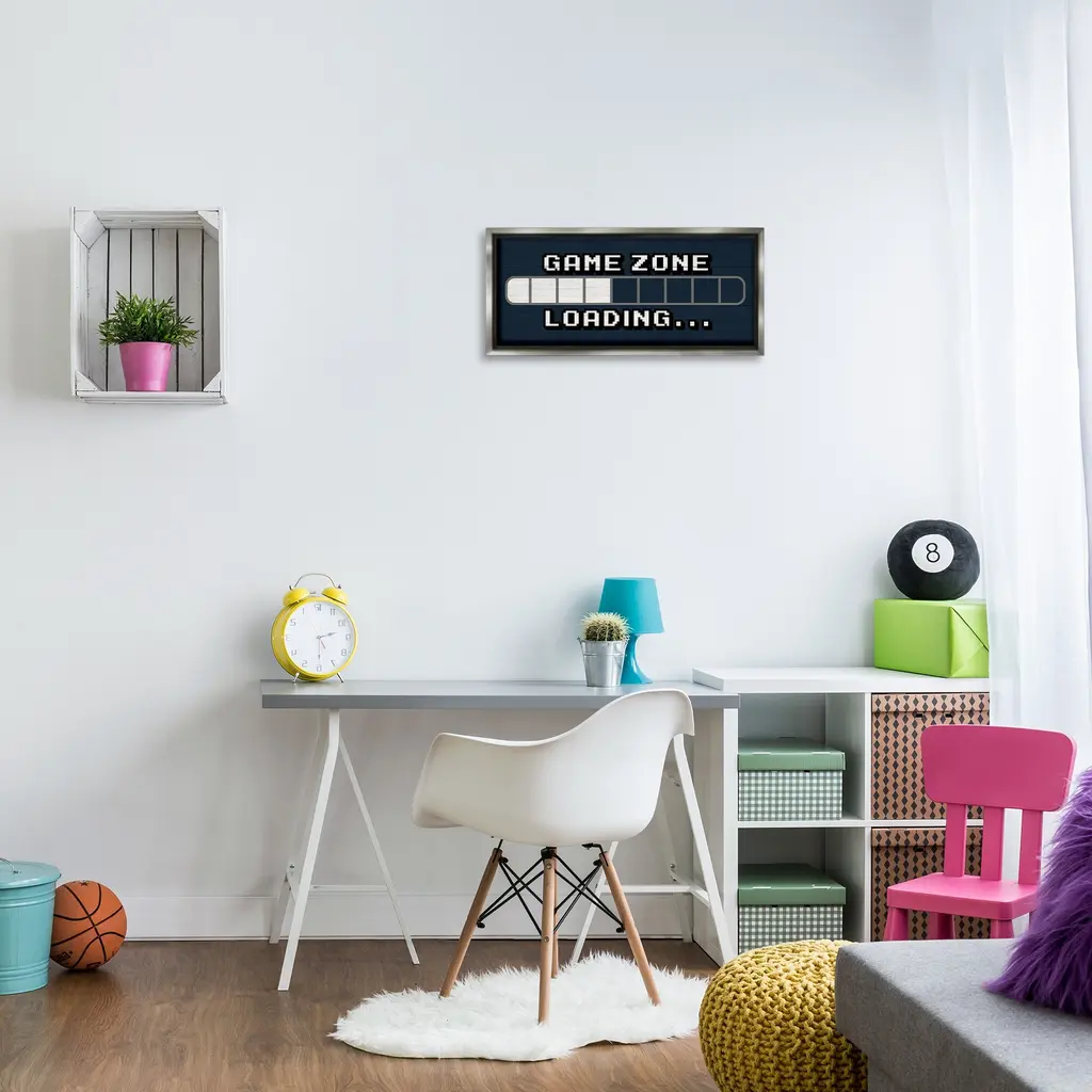 Elevate your home or office to the next level with Stupell Framed Floating Canvas Wall Art. Our premium hand-stretched canvas is mounted securely into a sturdy lightweight frame. The museum-style gap between the wrapped canvas and the box frame gives the illusion of floating artwork. Stupell Wall Art is made in the USA.Features: Dimensions: 25 x 1.7 x 11 Frame, 24 x 1.5 x 10 Canvas ArtFloating Frame Canvas Products are available in sizes 25"x11" and 31"x14". All Floating Frame Canvas Products have a 1.7" Depth.Wall Art is Ready to Hang with Hardware Free Hanging. No Installation required. For Easy Set Up Lean or Layer Artwork on Shelf or Against Wall. Artwork is Permently Fixed into the Frame.Our elevated 1.7" Thick Floating Frame is the perfect complement to our canvas style Wall Art. We use only the highest quality inks in house with industry leading printing solutions. Canvas is hand stretched over a durable wood foundation and then mounted securly into a Modern Box Frame. Made in the USA.Artwork Relates To: Loading, Gaming, Gamer, Video Game, Symbol, VintageDesign by Lil' Rue