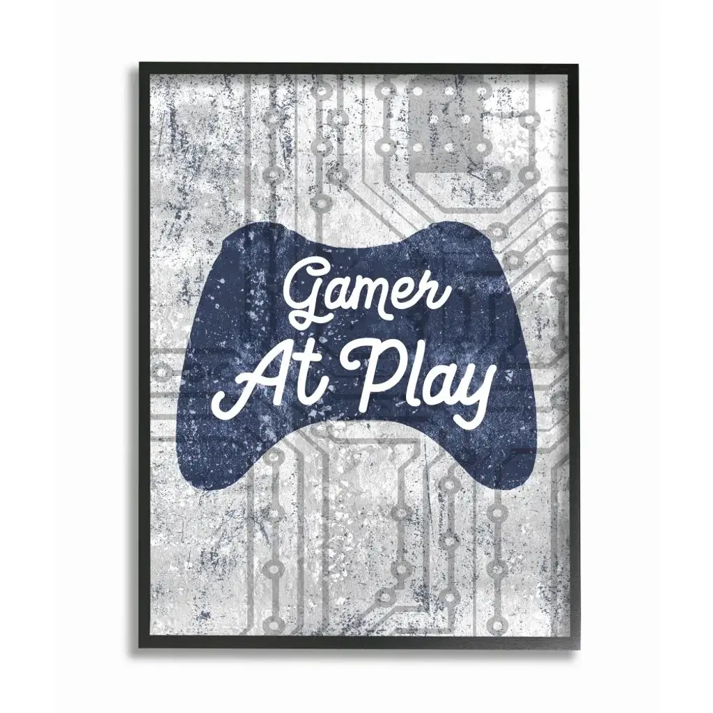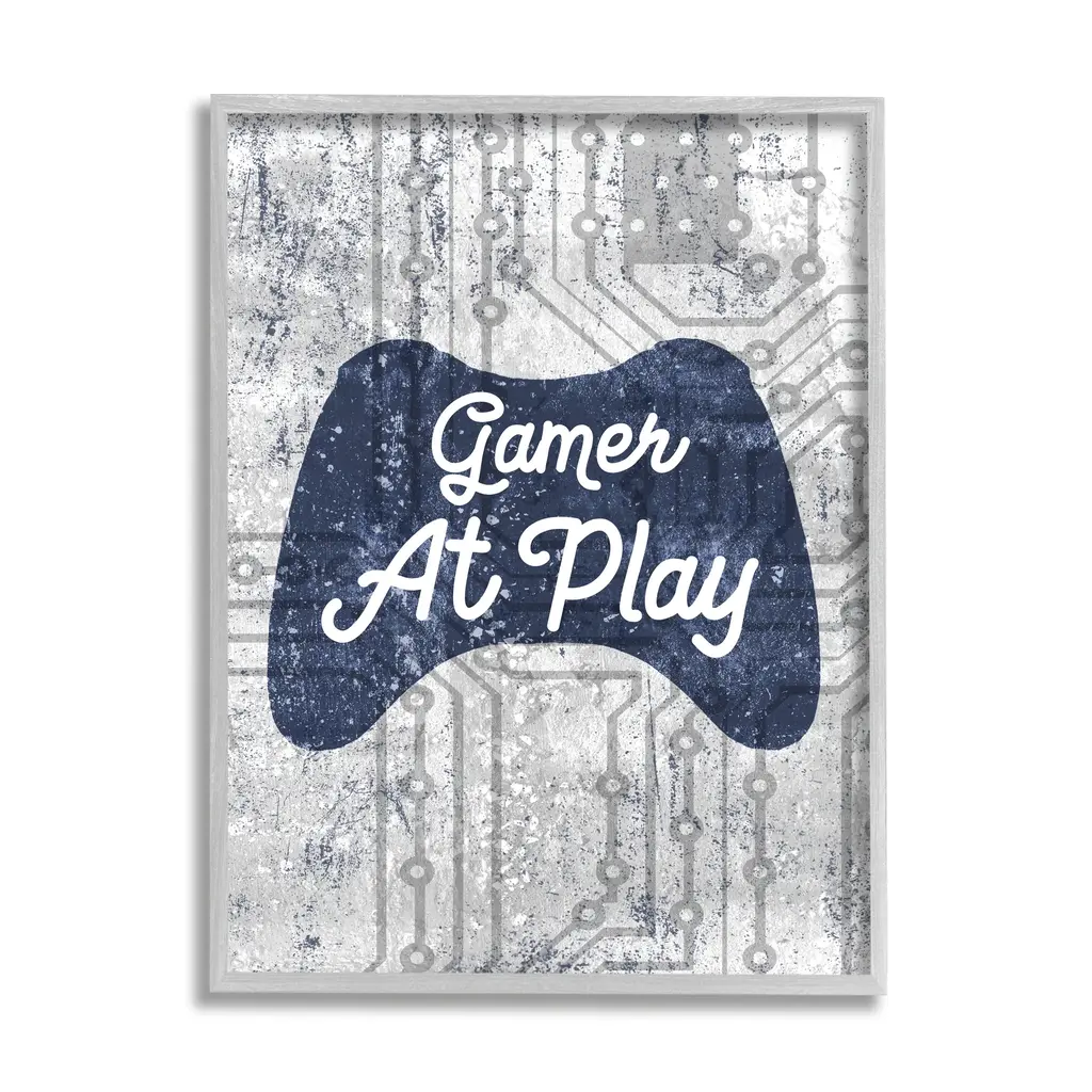 Stupell Gamer At Play Quote Video Game Technology Boys Framed Wall Art - 24 X 30 - Grey
