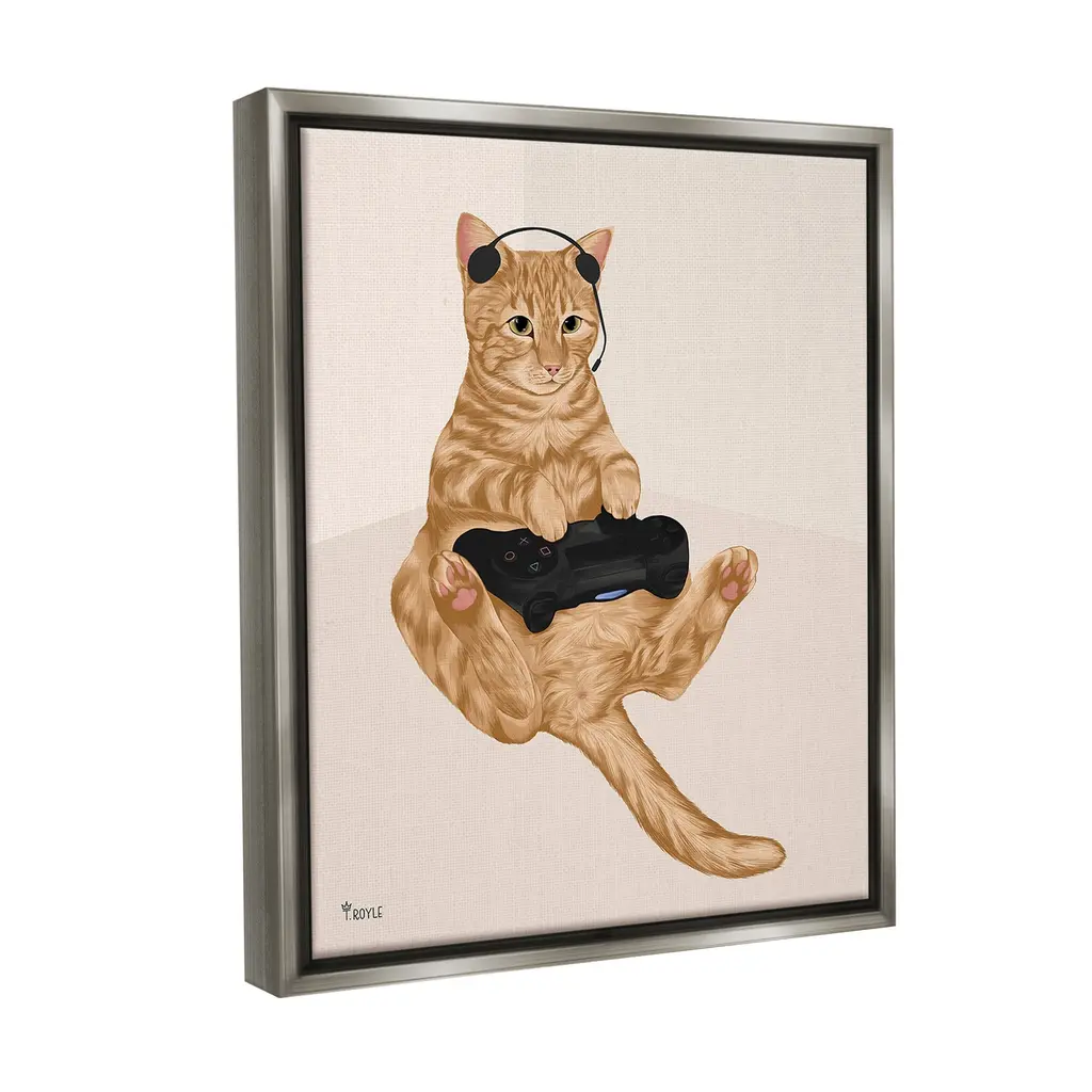 Elevate your home or office to the next level with Stupell Framed Floating Canvas Wall Art. Our premium hand-stretched canvas is mounted securely into a sturdy lightweight frame. The museum-style gap between the wrapped canvas and the box frame gives the illusion of floating artwork. Stupell Wall Art is made in the USA.Features: Dimensions: 17 x 1.7 x 21 Frame, 16 x 1.5 x 20 Canvas ArtFloating Frame Canvas Products are available in sizes 17"x21" and 25"x31". All Floating Frame Canvas Products have a 1.7" Depth.Wall Art is Ready to Hang with Hardware Free Hanging. No Installation required. For Easy Set Up Lean or Layer Artwork on Shelf or Against Wall. Artwork is Permently Fixed into the Frame.Our elevated 1.7" Thick Floating Frame is the perfect complement to our canvas style Wall Art. We use only the highest quality inks in house with industry leading printing solutions. Canvas is hand stretched over a durable wood foundation and then mounted securly into a Modern Box Frame. Made in the USA.Artwork Relates To: Animal, Pet, Cat, Video Game, Gaming, Gamer, Controller, Headset, Headphones, Humor, FunnyDesign by Tara Royle