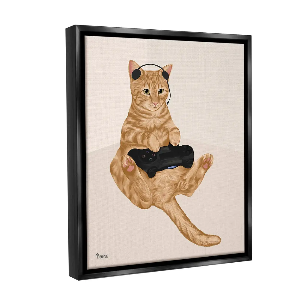 Elevate your home or office to the next level with Stupell Framed Floating Canvas Wall Art. Our premium hand-stretched canvas is mounted securely into a sturdy lightweight frame. The museum-style gap between the wrapped canvas and the box frame gives the illusion of floating artwork. Stupell Wall Art is made in the USA.Features: Dimensions: 17 x 1.7 x 21 Frame, 16 x 1.5 x 20 Canvas ArtFloating Frame Canvas Products are available in sizes 17"x21" and 25"x31". All Floating Frame Canvas Products have a 1.7" Depth.Wall Art is Ready to Hang with Hardware Free Hanging. No Installation required. For Easy Set Up Lean or Layer Artwork on Shelf or Against Wall. Artwork is Permently Fixed into the Frame.Our elevated 1.7" Thick Floating Frame is the perfect complement to our canvas style Wall Art. We use only the highest quality inks in house with industry leading printing solutions. Canvas is hand stretched over a durable wood foundation and then mounted securly into a Modern Box Frame. Made in the USA.Artwork Relates To: Animal, Pet, Cat, Video Game, Gaming, Gamer, Controller, Headset, Headphones, Humor, FunnyDesign by Tara Royle