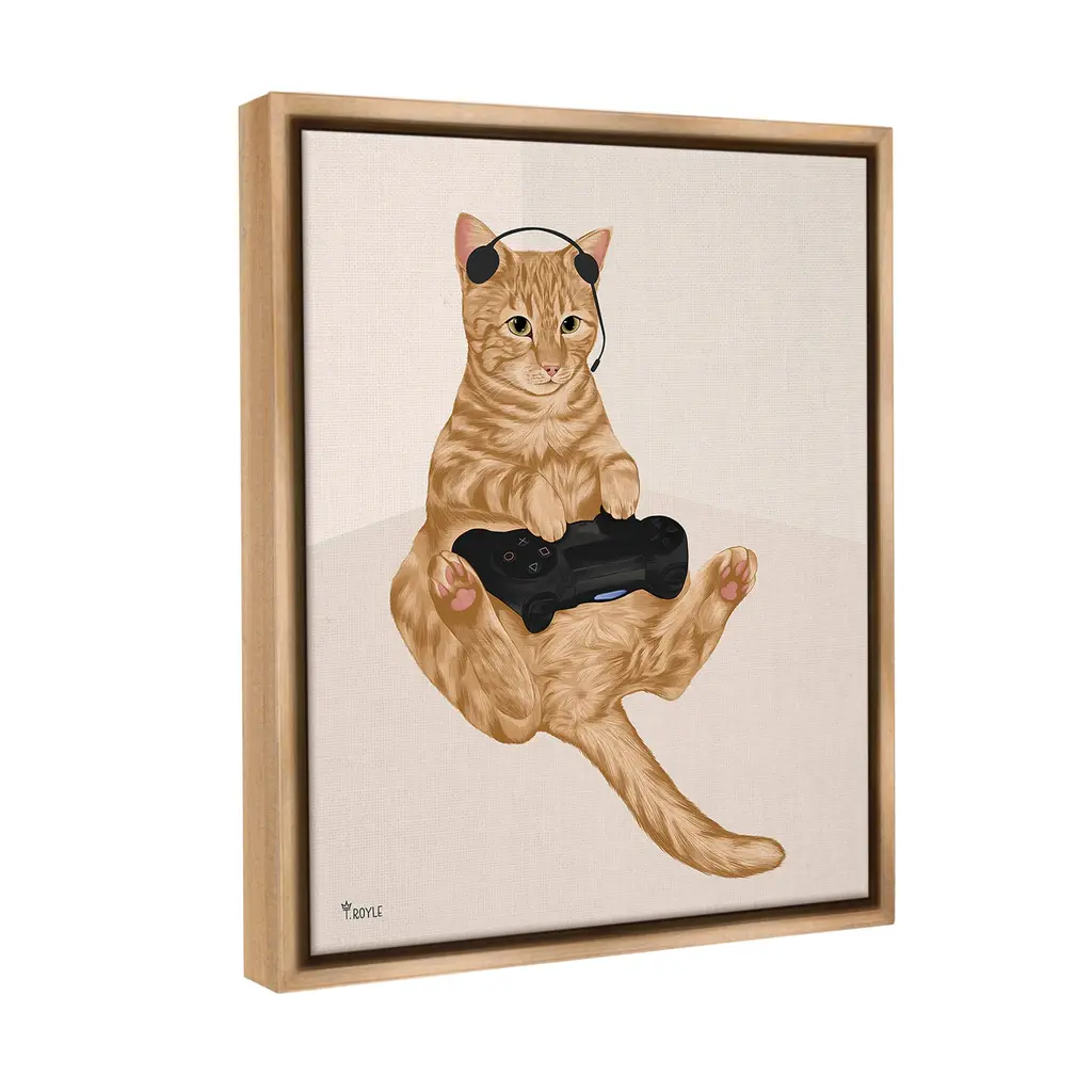 Elevate your home or office to the next level with Stupell Framed Floating Canvas Wall Art. Our premium hand-stretched canvas is mounted securely into a sturdy lightweight frame. The museum-style gap between the wrapped canvas and the box frame gives the illusion of floating artwork. Stupell Wall Art is made in the USA.Features: Dimensions: 17 x 1.7 x 21 Frame, 16 x 1.5 x 20 Canvas ArtFloating Frame Canvas Products are available in sizes 17"x21" and 25"x31". All Floating Frame Canvas Products have a 1.7" Depth.Wall Art is Ready to Hang with Hardware Free Hanging. No Installation required. For Easy Set Up Lean or Layer Artwork on Shelf or Against Wall. Artwork is Permently Fixed into the Frame.Our elevated 1.7" Thick Floating Frame is the perfect complement to our canvas style Wall Art. We use only the highest quality inks in house with industry leading printing solutions. Canvas is hand stretched over a durable wood foundation and then mounted securly into a Modern Box Frame. Made in the USA.Artwork Relates To: Animal, Pet, Cat, Video Game, Gaming, Gamer, Controller, Headset, Headphones, Humor, FunnyDesign by Tara Royle