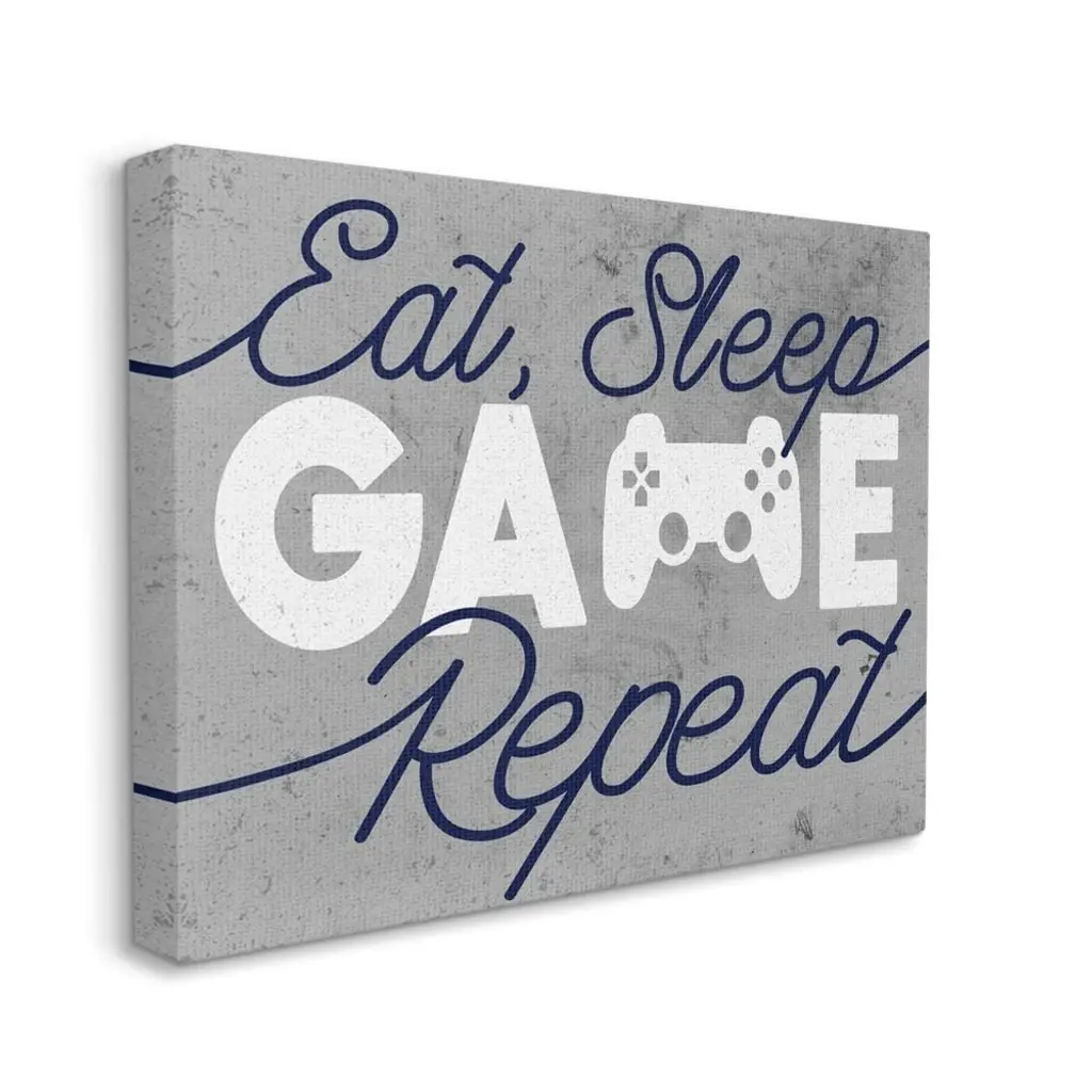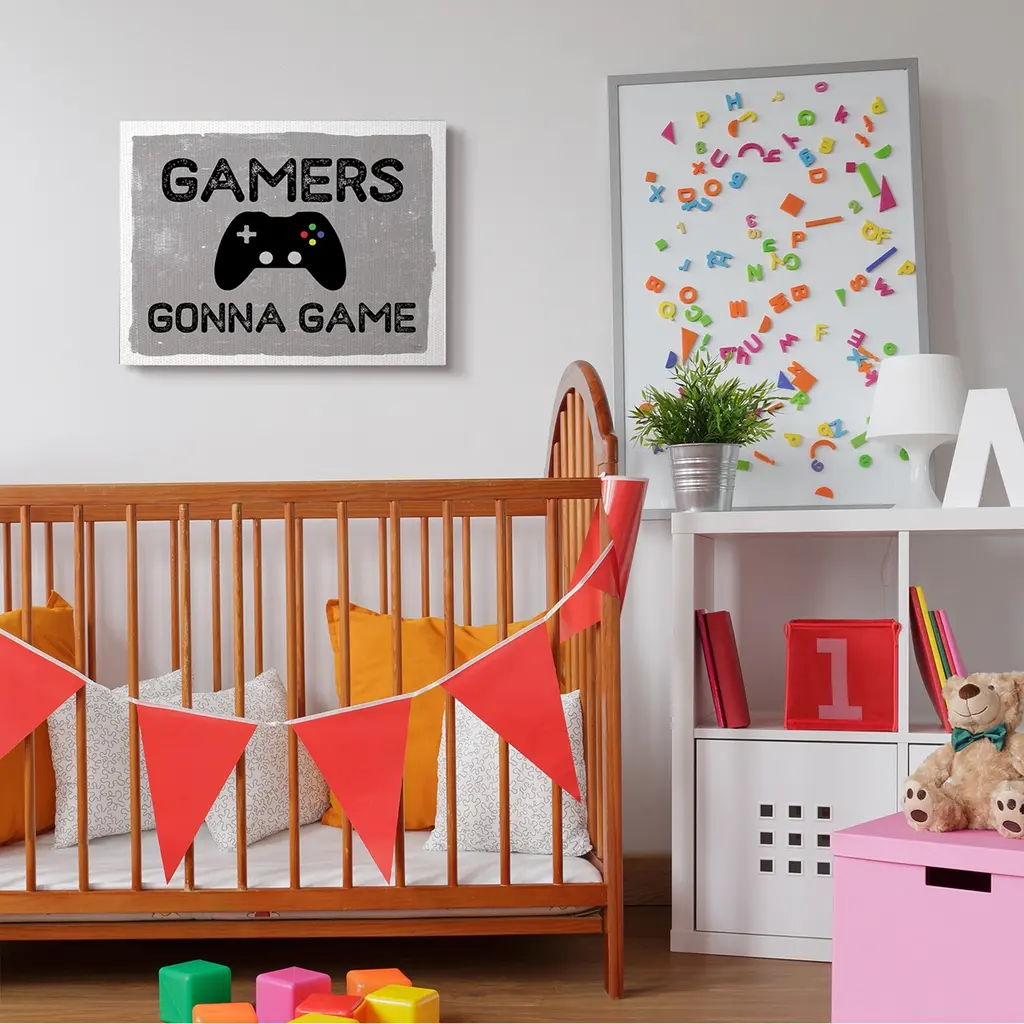 Stupell Gamers Gonna Game Phrase Controller Distressed Pattern Canvas Wall Art - Grey - 24 X 30