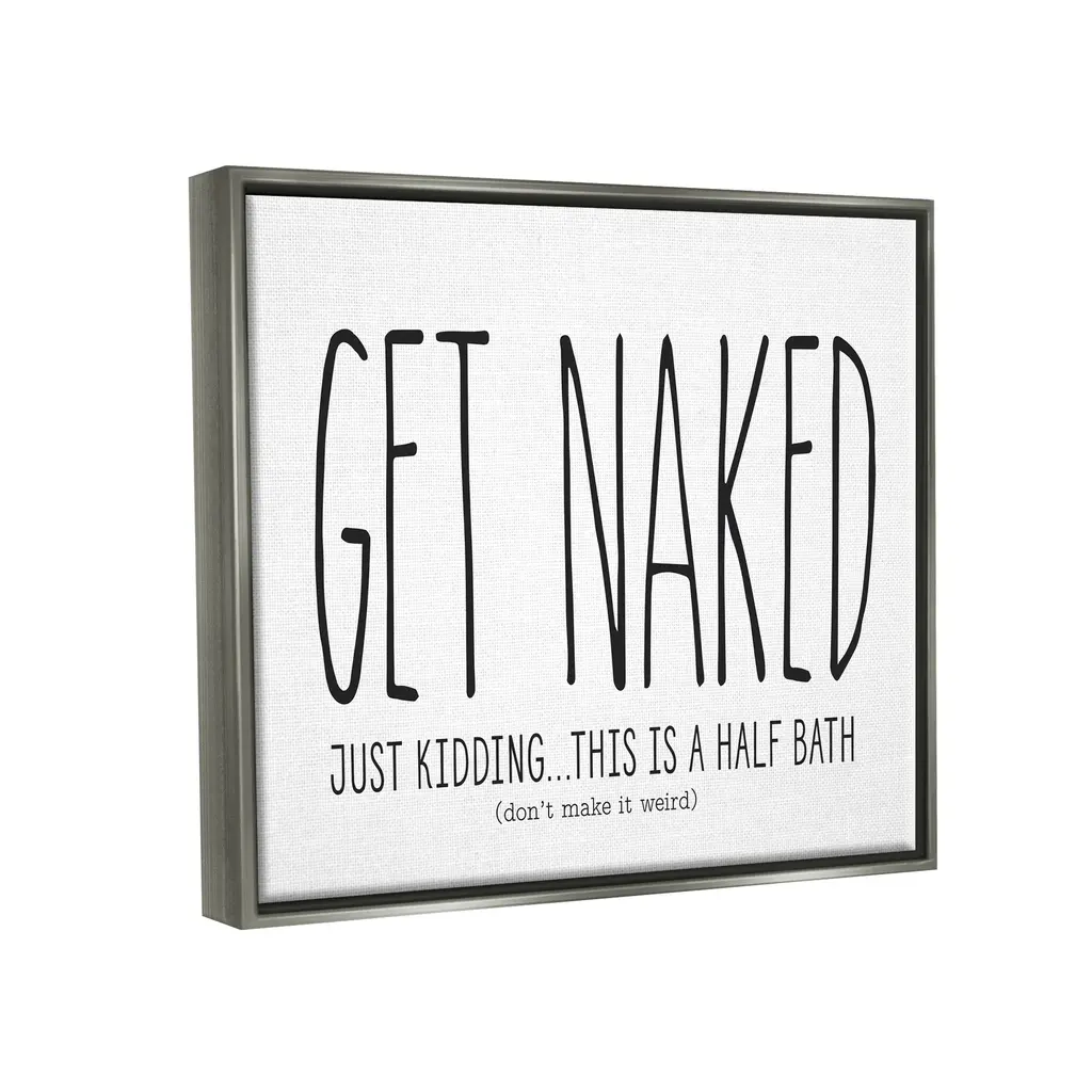 Stupell Get Naked Funny Word Bathroom Black And White Design Floater Frame - 24 X 30 - Grey