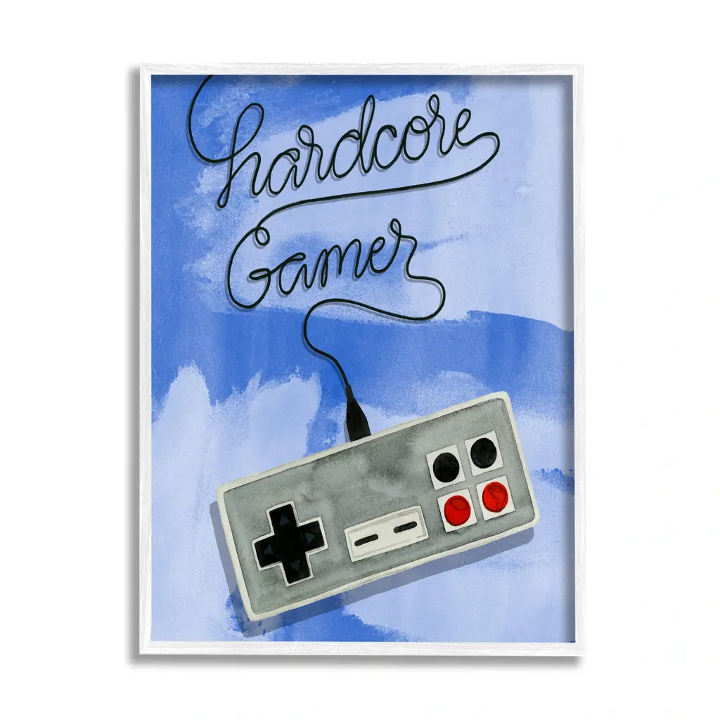 Add dimension to any room with our textured Framed Giclee Artwork. Our framed artwork is securely mounted into a 1.5-inch thick wood grain frame and ready to hang. Frames are available in three alluring styles: black, gray farmhouse and white. In addition, you should check out our oversized options if you want a statement piece. Stupell Wall Art is made in the USA.Features: Dimensions: 11 x 1.5 x 14 FramedFramed Giclee Sizes Include Standard: 11 x 1.5 x 14 Large: 16 x 1.5 x 20 Oversized: 24 x 1.5 x 30Wall Art is Ready to Hang - No Installation or Hardware Needed. For Easy Set Up Lean or Layer Artwork on Shelf or Against Wall.Our giclée prints are carefully mounted on a durable MDF backing, and then perfectly finished in a 1.5 inch thick woodgrain frame. Mounted frame colors include black, gray farmhouse and white. Made In USA.Artwork Relates To: Electronics, Joystick, Person, Video Gaming, Gaming, Video Game, Controller, Hardcore GamerDesign by Grace Popp