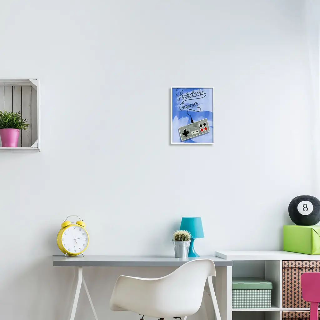 Add dimension to any room with our textured Framed Giclee Artwork. Our framed artwork is securely mounted into a 1.5-inch thick wood grain frame and ready to hang. Frames are available in three alluring styles: black, gray farmhouse and white. In addition, you should check out our oversized options if you want a statement piece. Stupell Wall Art is made in the USA.Features: Dimensions: 11 x 1.5 x 14 FramedFramed Giclee Sizes Include Standard: 11 x 1.5 x 14 Large: 16 x 1.5 x 20 Oversized: 24 x 1.5 x 30Wall Art is Ready to Hang - No Installation or Hardware Needed. For Easy Set Up Lean or Layer Artwork on Shelf or Against Wall.Our giclée prints are carefully mounted on a durable MDF backing, and then perfectly finished in a 1.5 inch thick woodgrain frame. Mounted frame colors include black, gray farmhouse and white. Made In USA.Artwork Relates To: Electronics, Joystick, Person, Video Gaming, Gaming, Video Game, Controller, Hardcore GamerDesign by Grace Popp