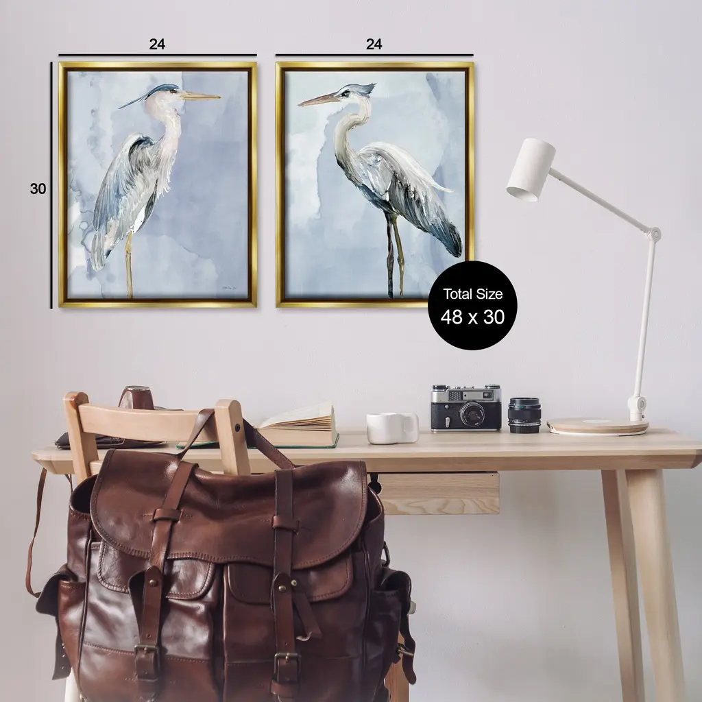 Elevate your home or office to the next level with Stupell Framed Floating Canvas Wall Art. Our premium hand-stretched canvas is mounted securely into a sturdy lightweight frame. The museum-style gap between the wrapped canvas and the box frame gives the illusion of floating artwork. Stupell Wall Art is made in the USA.Features: Dimensions: 2 Piece Set, Each Frame is 17 x 1.7 x 21Two Piece Floater Framed Canvas are available as 17x21 or 25x31 Panels. All Floater Frame Products have a 1.7" Depth.Wall Art is Ready to Hang with Hardware Free Hanging. No Installation required. For Easy Set Up Lean or Layer Artwork on Shelf or Against Wall. Artwork is Permently Fixed into the Frame.Our elevated 1.7" Thick Floating Frame is the perfect complement to our canvas style Wall Art. We use only the highest quality inks in house with industry leading printing solutions. Canvas is hand stretched over a durable wood foundation and then mounted securly into a Modern Box Frame. Made in the USA.Artwork Relates To: Bird, Animal, Waterfowl, Heron, Ardeidae, Painting, Watercolor, NauticalDesign by Stellar Design Studio