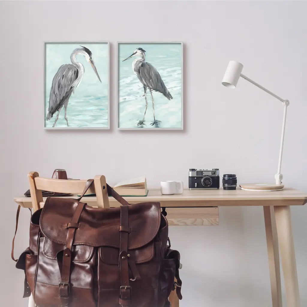 Stupell Heron Birds Standing Shallow Beach Water Coastal Waves 2Pc Multi Piece Framed Wall Art Set - 11 X 14 - Grey
