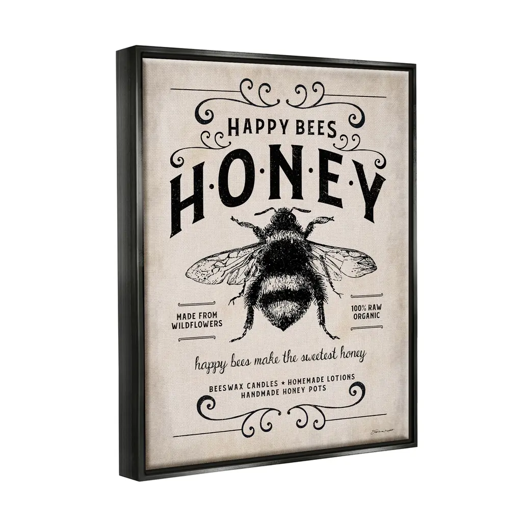 Stupell Honey Bee Rustic Farm Textured Word Design Floater Frame - Beige - 16 X 20 - Black