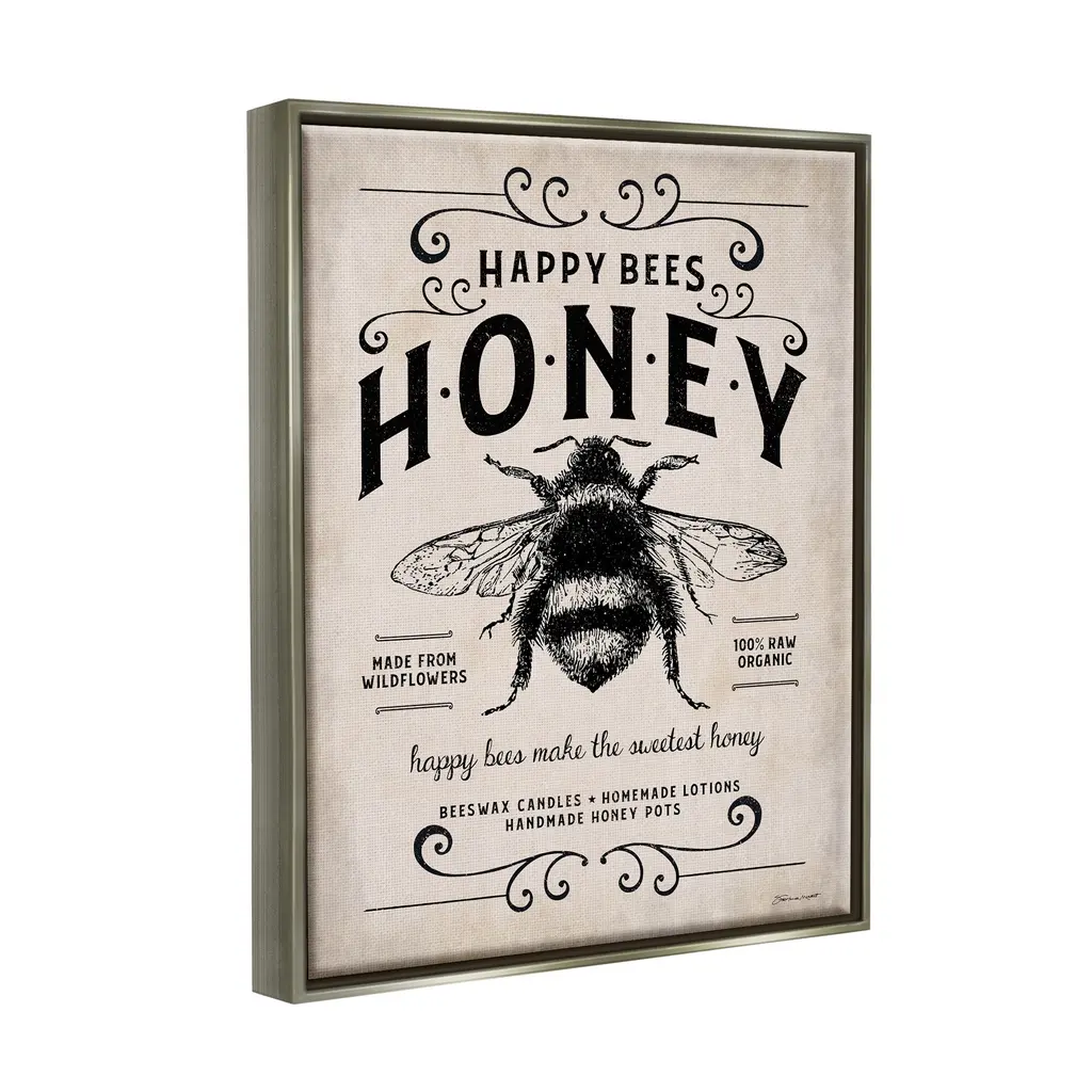 Stupell Honey Bee Rustic Farm Textured Word Design Floater Frame - Beige - 24 X 30 - Grey