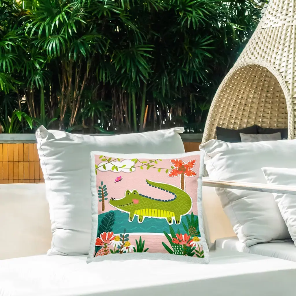 Stupell Industries Alligator In Swamp Outdoor Decorative Throw Pillow, 18 X 18