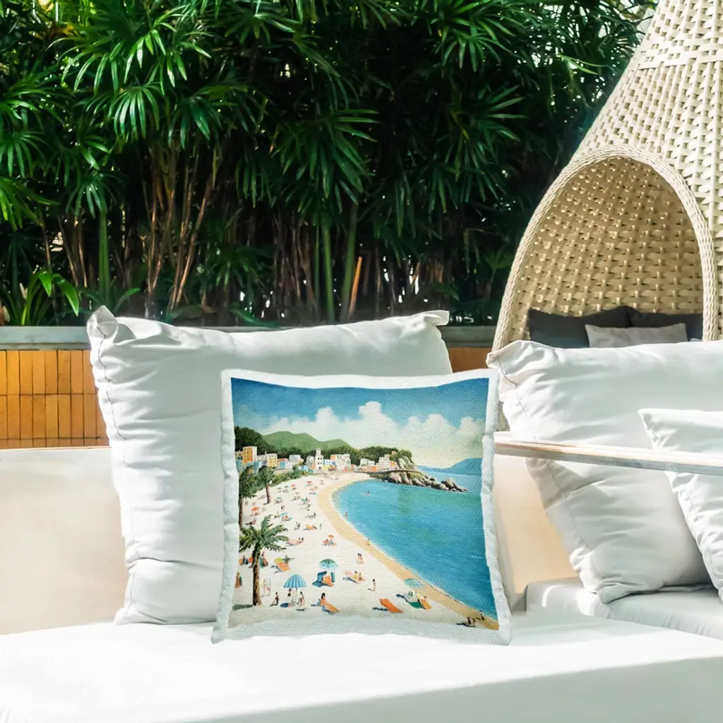 Stupell Industries Beachgoers On Tropical Shore Outdoor Decorative Throw Pillow, 18 X 18