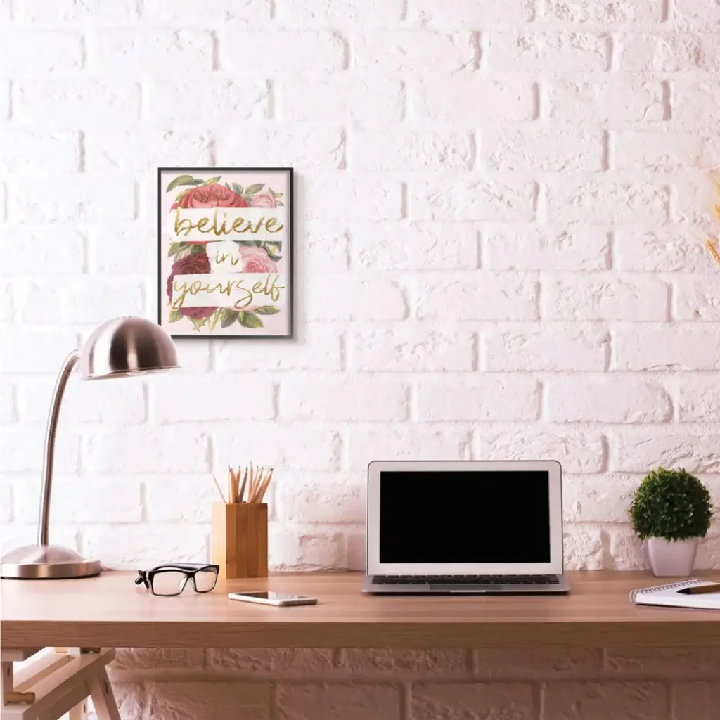 Stupell Industries Believe In Yourself Pink Gold Rose Word Design, 11"x14"