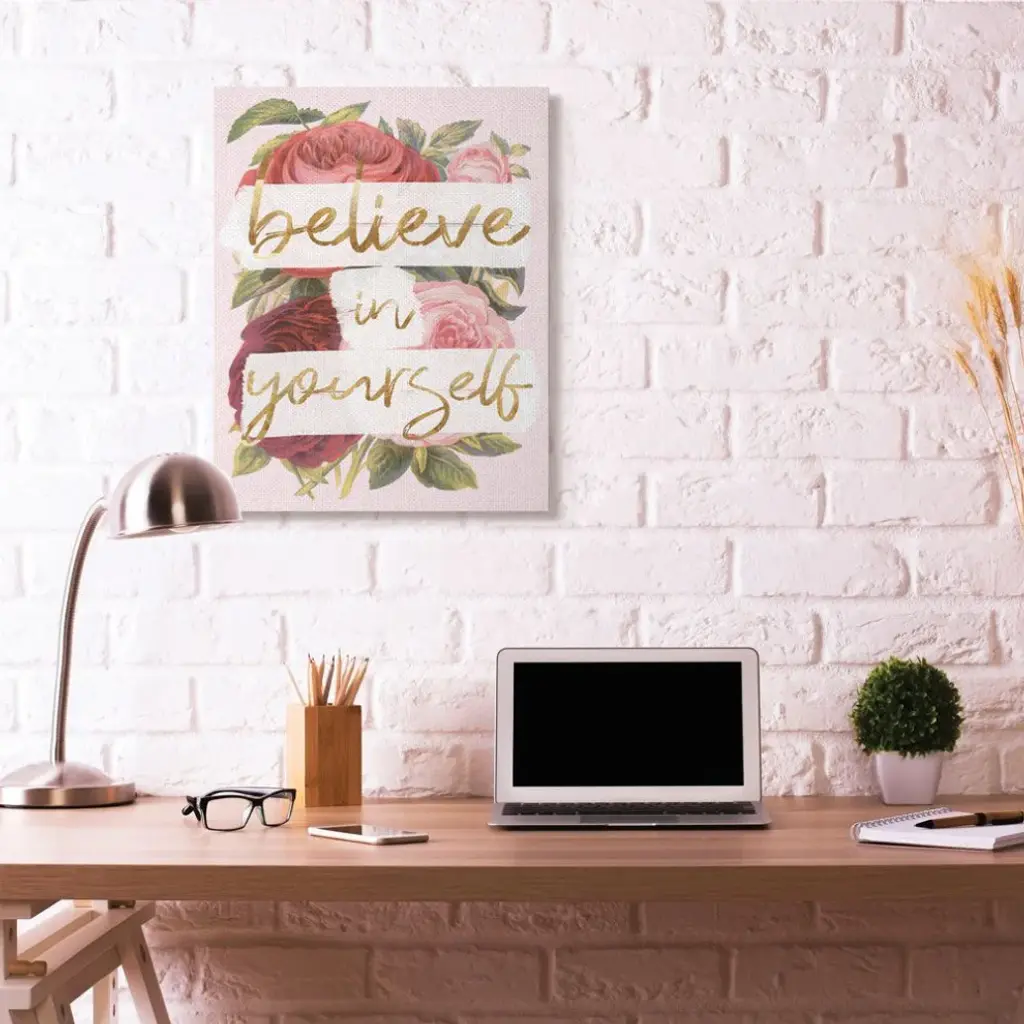 Stupell Industries Believe In Yourself Pink Gold Rose Word Design, 30"x40"