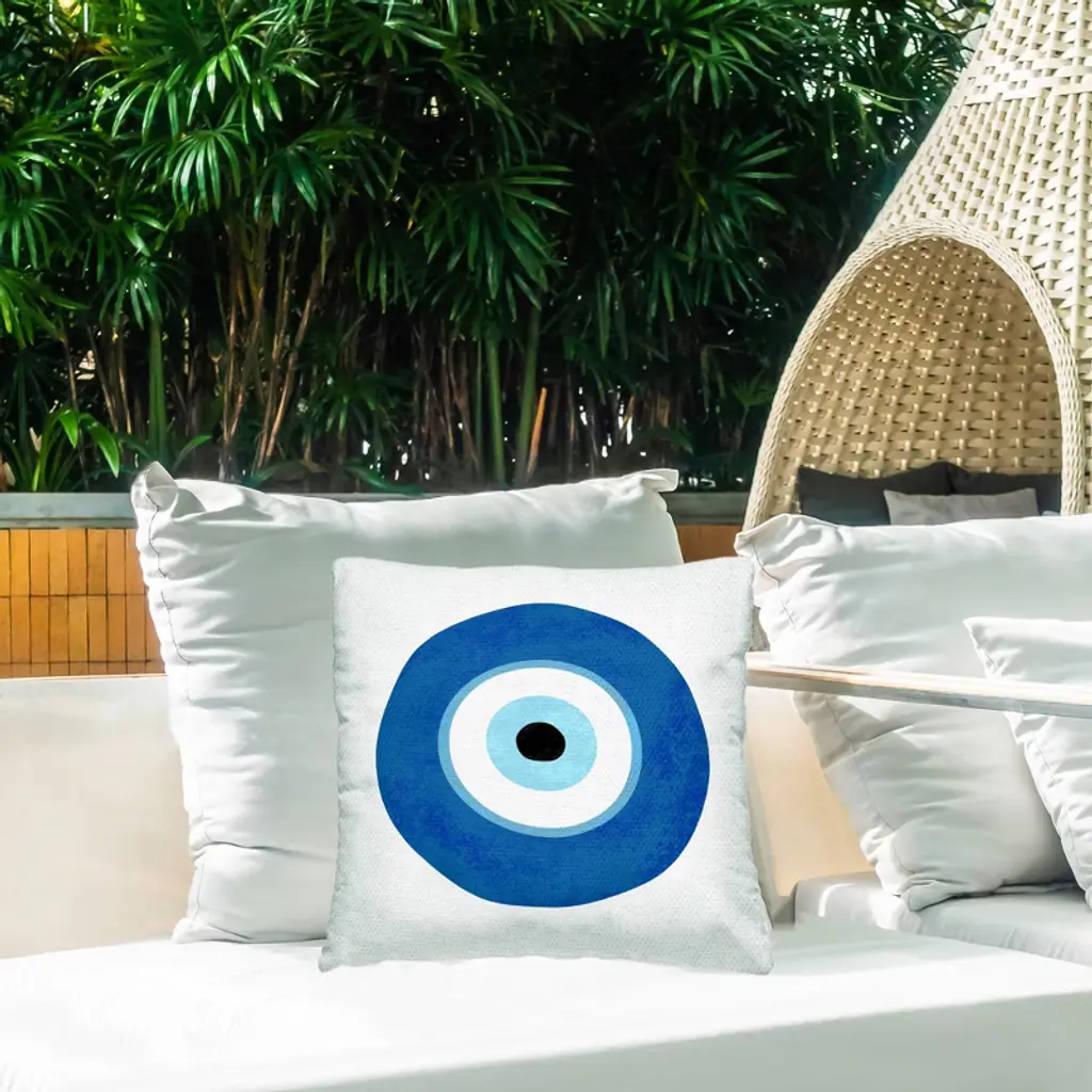 Stupell Industries Evil Eye Centric Bold Blue Abstract Circular Shapes Printed Decorative Throw Pillow Outdoor Decorative Throw Pillow, 18 X 18
