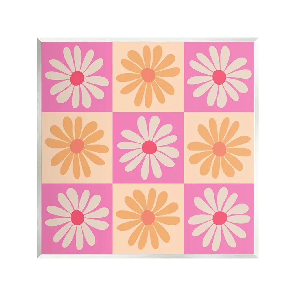 Stupell Industries Fun Daisy Checkerboard Outdoor Decorative Throw Pillow, 18 X 18