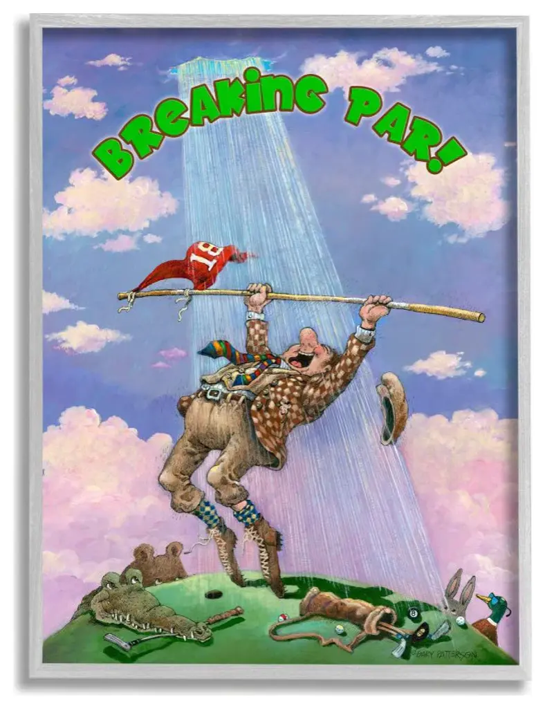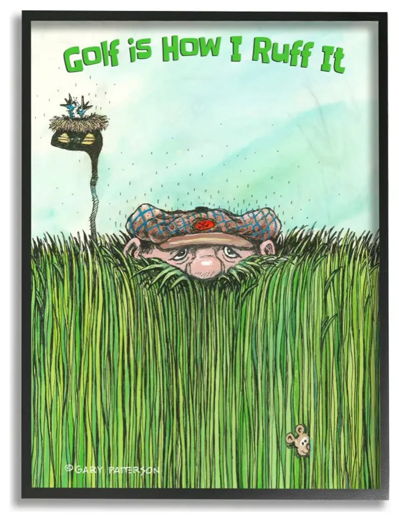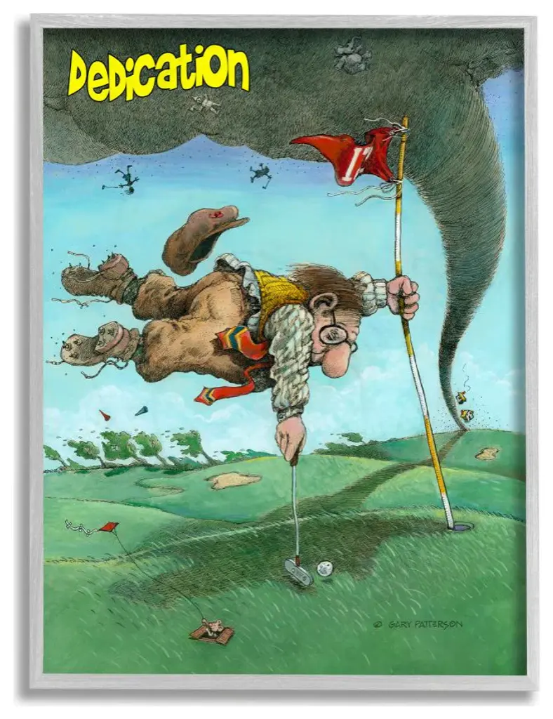 Stupell Industries Gold Fanatic Funny Golf Cartoon Sports Design, 16"x20", Black