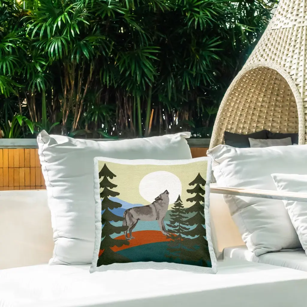 Stupell Industries Grey Howling Wolf Forest Trees Moon Outdoor Decorative Throw Pillow, 18 X 18