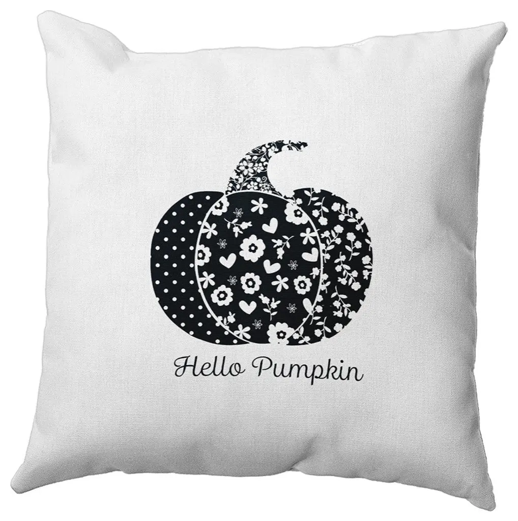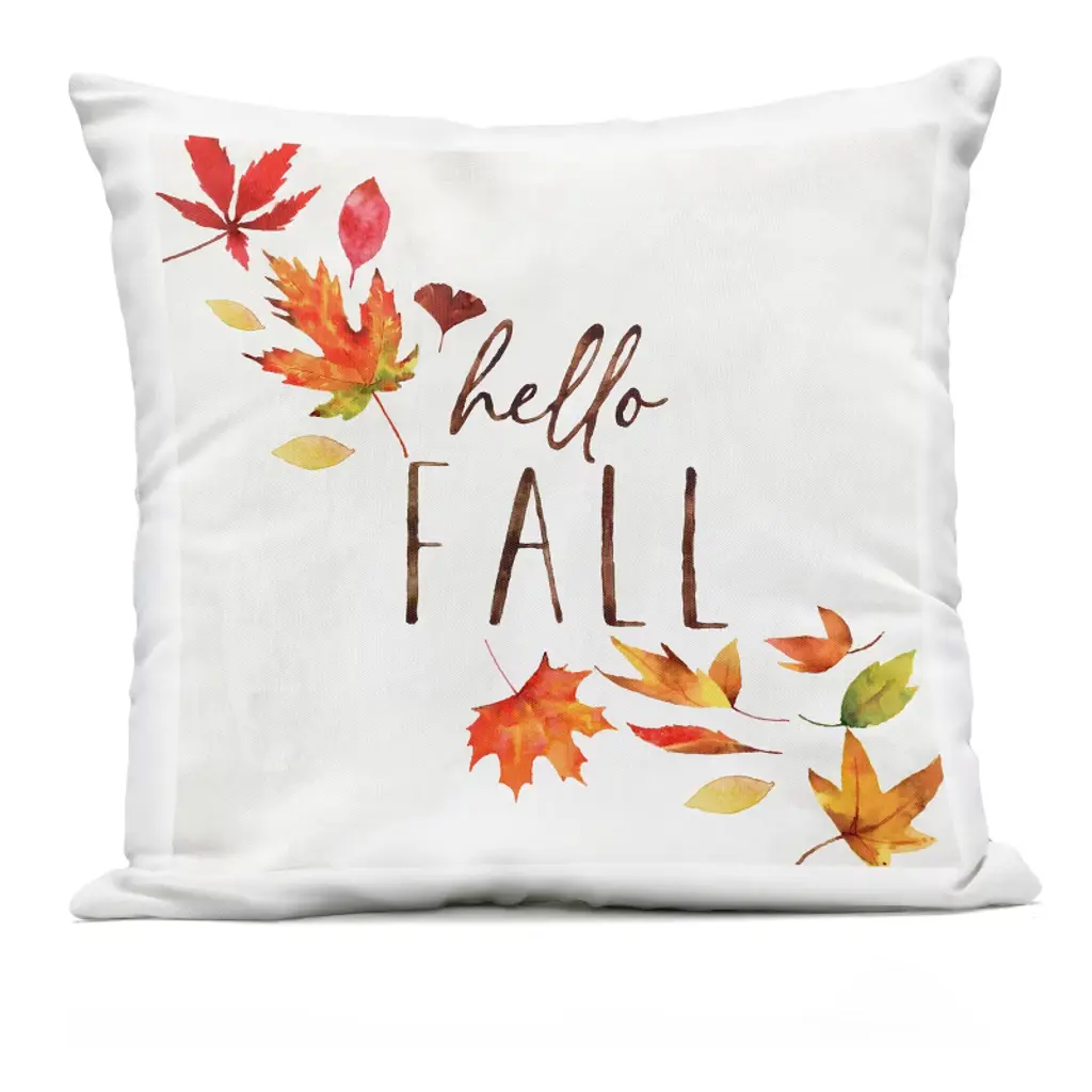 Stupell Industries Hello Fall Mixed Leaves Pumpkin Shape Calligraphy Outdoor Decorative Throw Pillow, 18 X 18