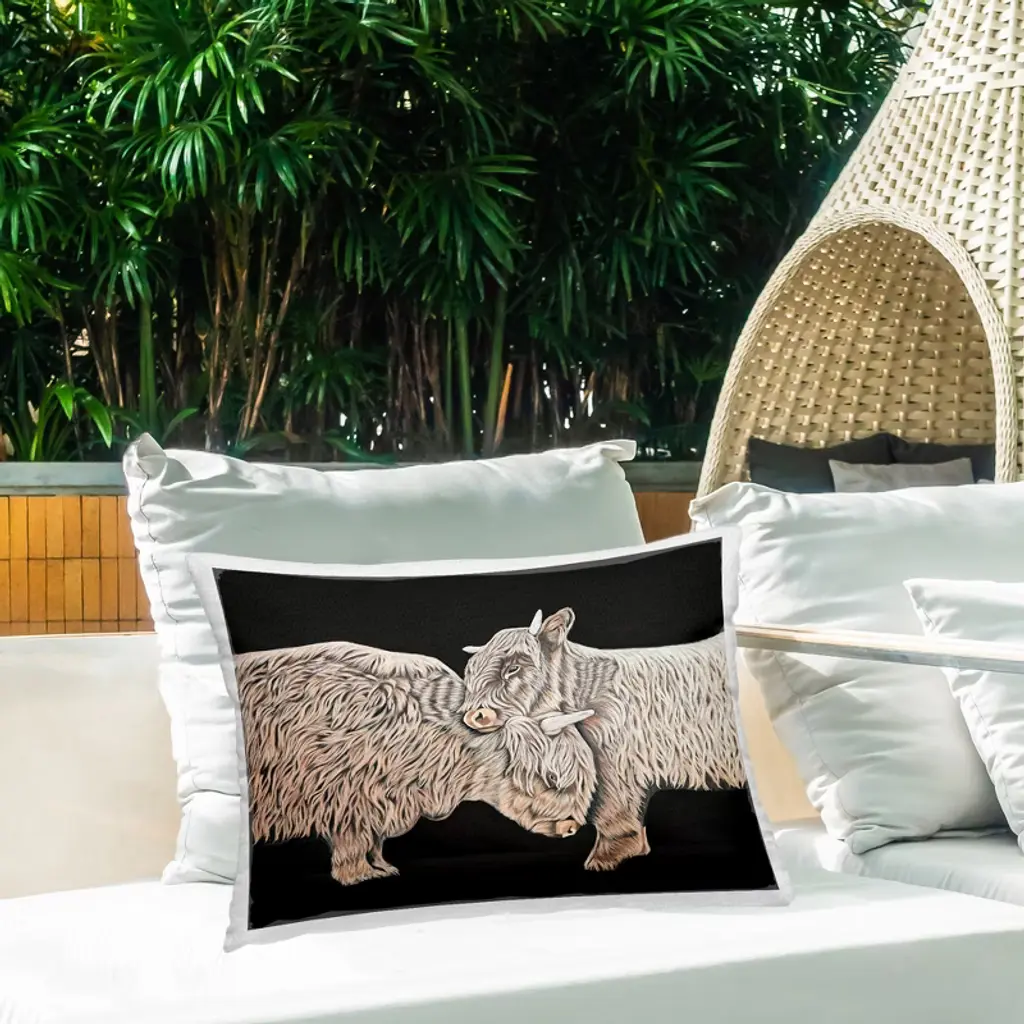 Stupell Industries Hugging Cattle On Black Outdoor Decorative Throw Pillow, 14 X 20