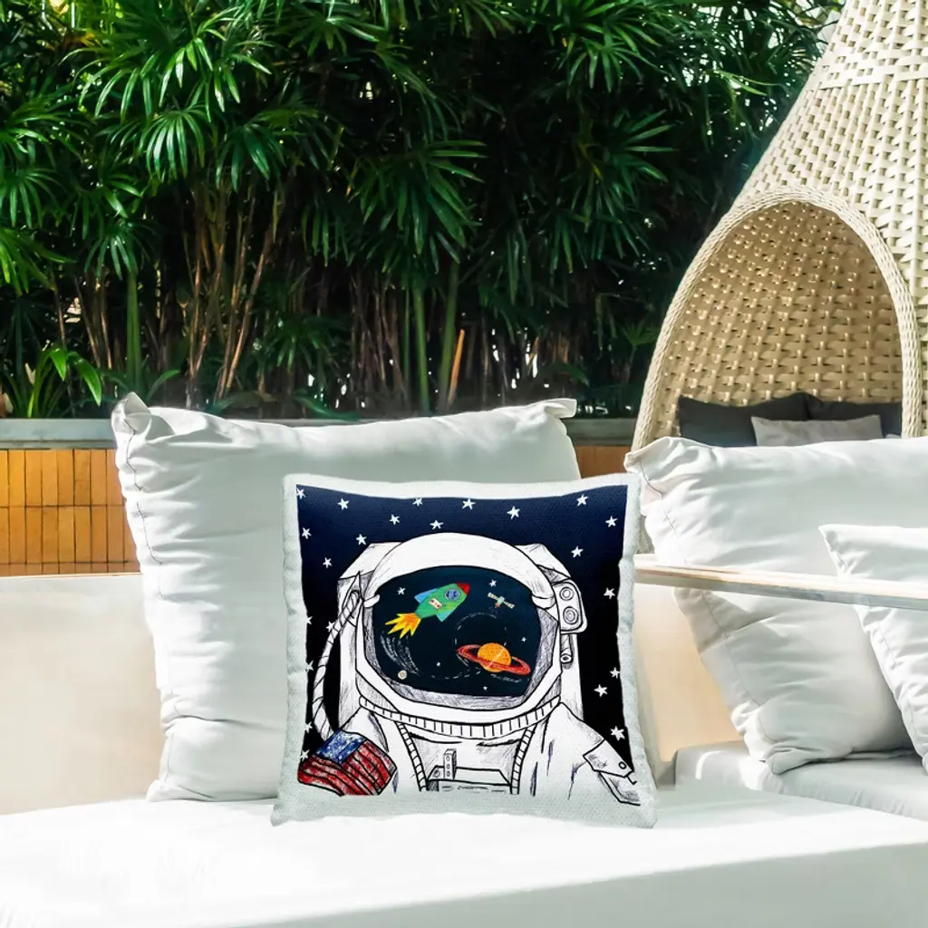 Stupell Industries Us Astronaut Outer Space Galaxy Reflection Outdoor Decorative Throw Pillow, 18 X 18
