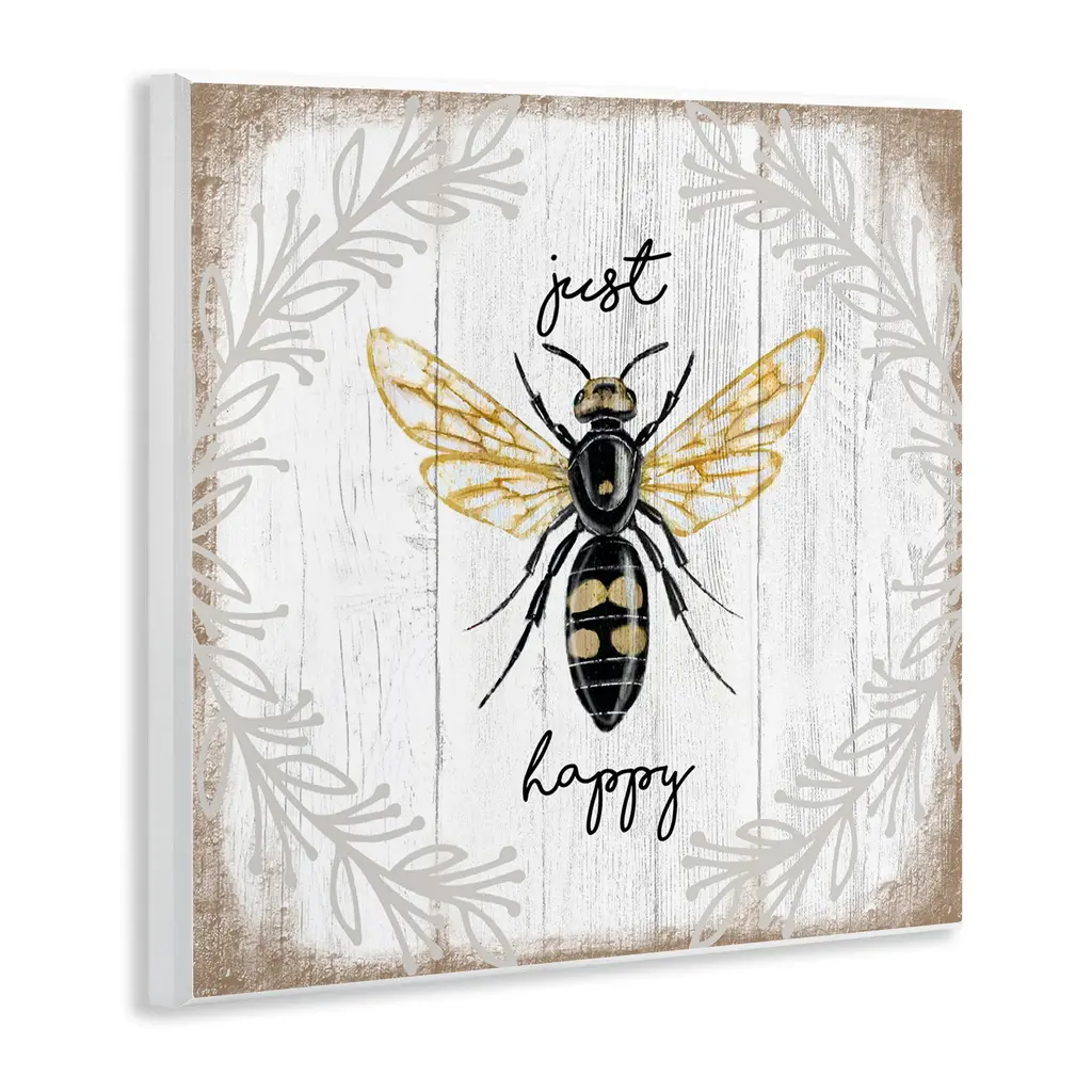 Stupell Just Be Happy Charming Rustic Bee Pun Wall Plaque Art Design By Elizabeth Tyndall - 12 X 12