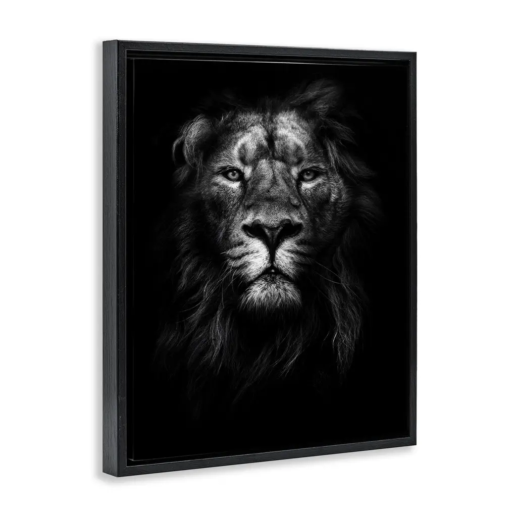 Stupell King Of The Jungle Lion In Shadows Black And White Photography Floater Frame - 17 X 21 - Black