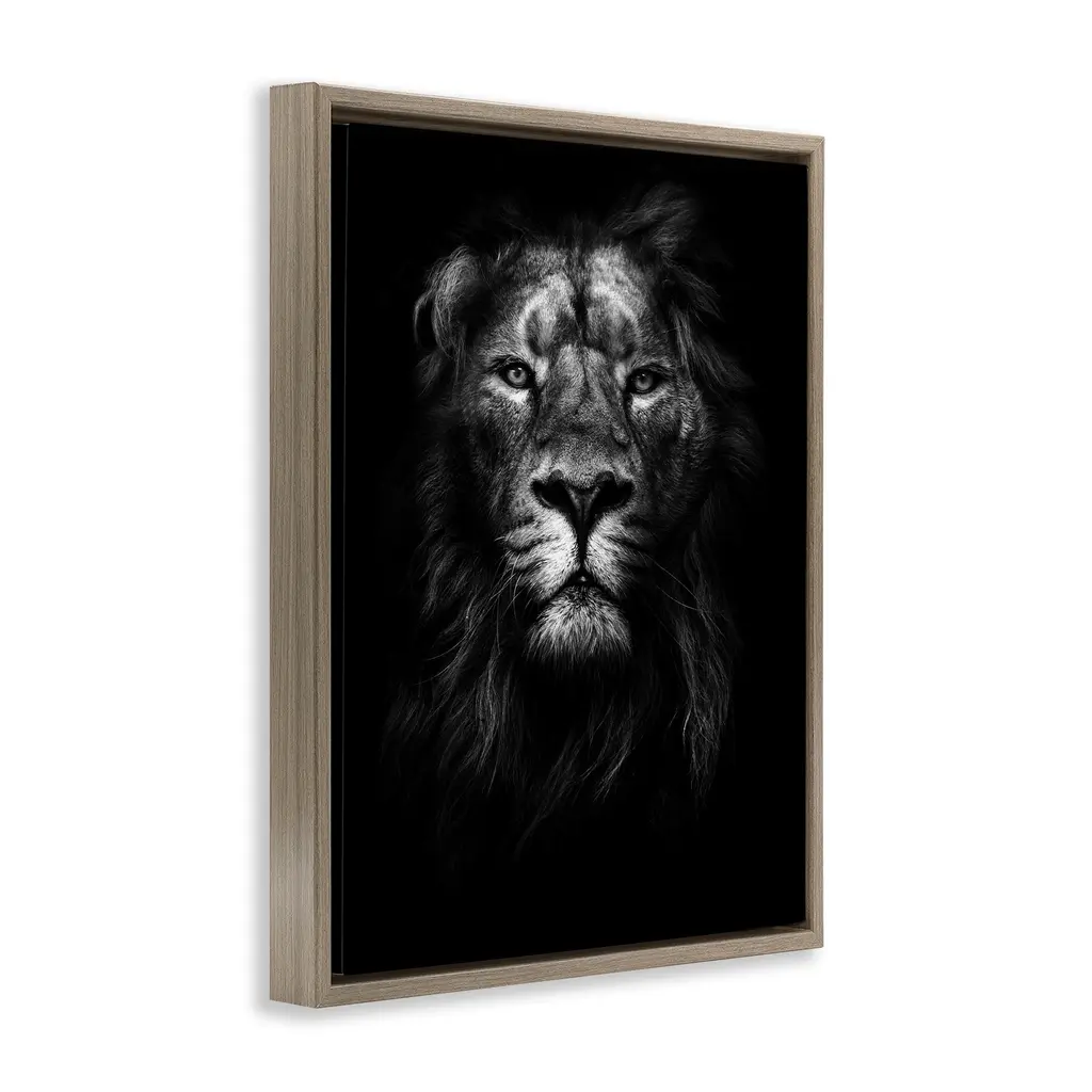 Stupell King Of The Jungle Lion In Shadows Black And White Photography Floater Frame - 25 X 31 - Brown