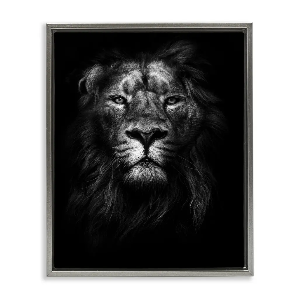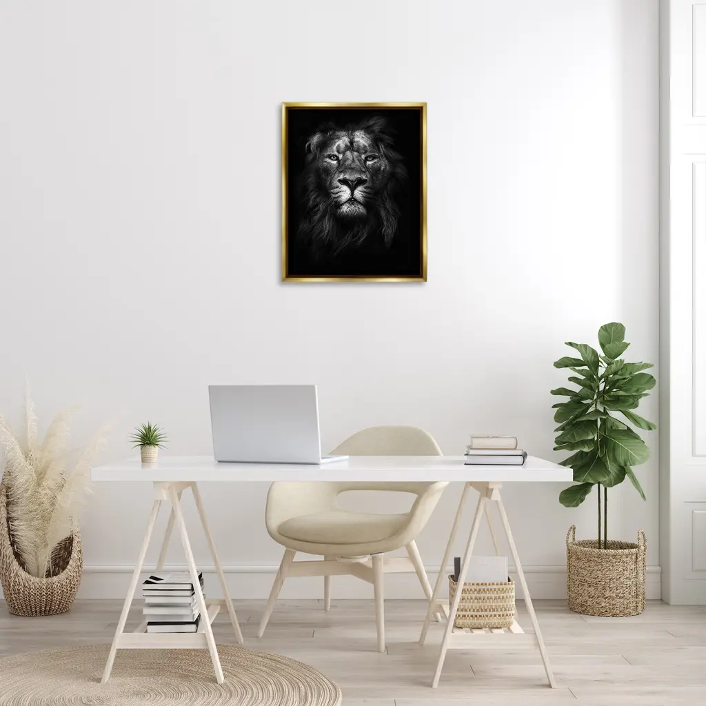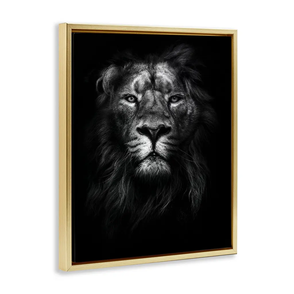 Stupell King Of The Jungle Lion In Shadows Black And White Photography Floater Frame - 25 X 31 - Gold