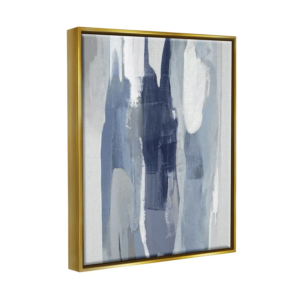 Stupell Layers Of Blue And White Abstract Movements Floater Frame - 16 X 20 - Gold