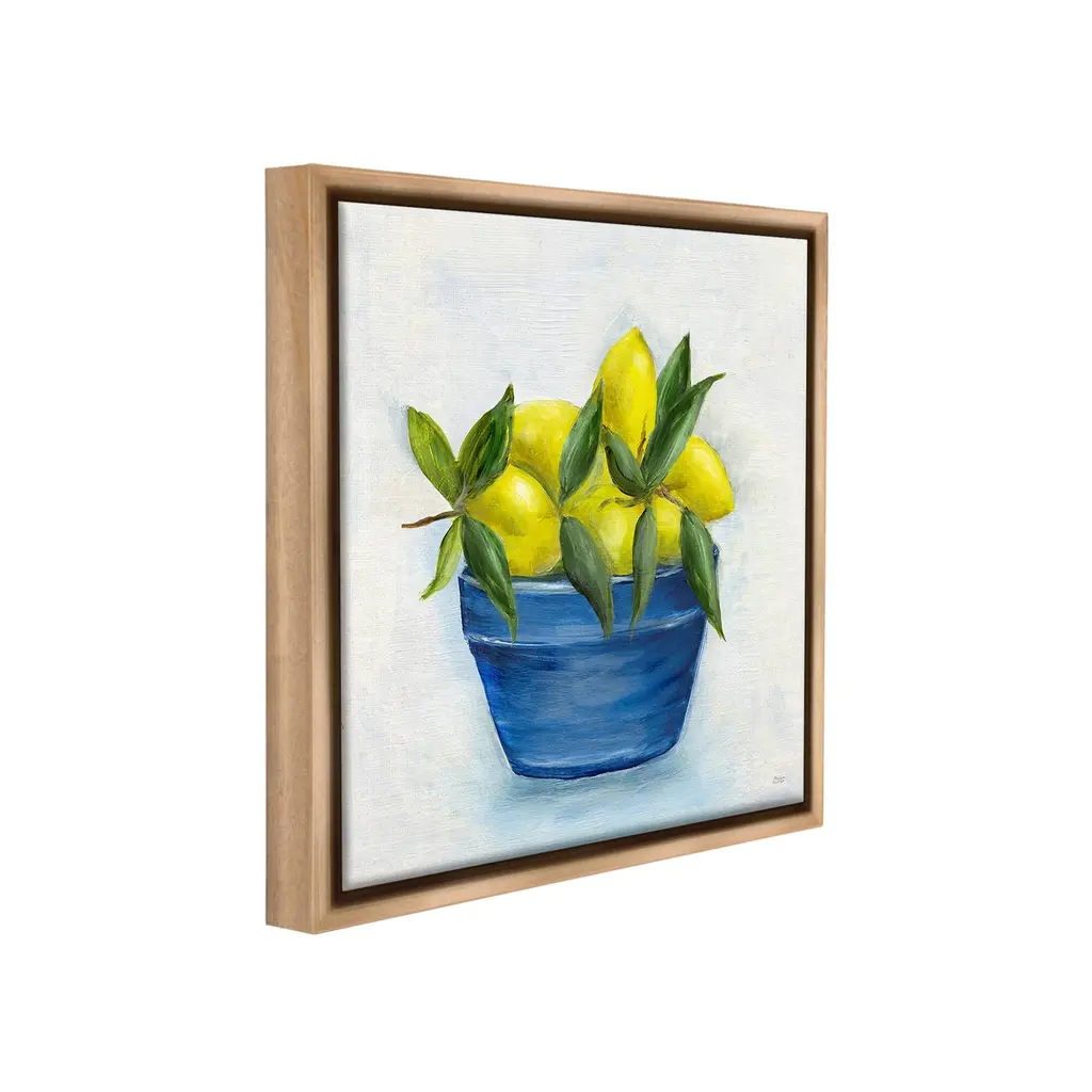 Elevate your home or office to the next level with Stupell Framed Floating Canvas Wall Art. Our premium hand-stretched canvas is mounted securely into a sturdy lightweight frame. The museum-style gap between the wrapped canvas and the box frame gives the illusion of floating artwork. Stupell Wall Art is made in the USA.Features: Dimensions: 18 x 1.7 x 18 Frame, 17 x 1.5 x 17 Canvas ArtFloating Frame Canvas Products are available in sizes 18"x18" and 25"x25". All Floating Frame Canvas Products have a 1.7" Depth.Wall Art is Ready to Hang with Hardware Free Hanging. No Installation required. For Easy Set Up Lean or Layer Artwork on Shelf or Against Wall. Artwork is Permently Fixed into the Frame.Our elevated 1.7" Thick Floating Frame is the perfect complement to our canvas style Wall Art. We use only the highest quality inks in house with industry leading printing solutions. Canvas is hand stretched over a durable wood foundation and then mounted securly into a Modern Box Frame. Made in the USA.Artwork Relates To: Citrus, Food, Fruit, Lemon, Plant, Produce, Country, Kitchen, BouquetDesign by Marilyn Dunlap