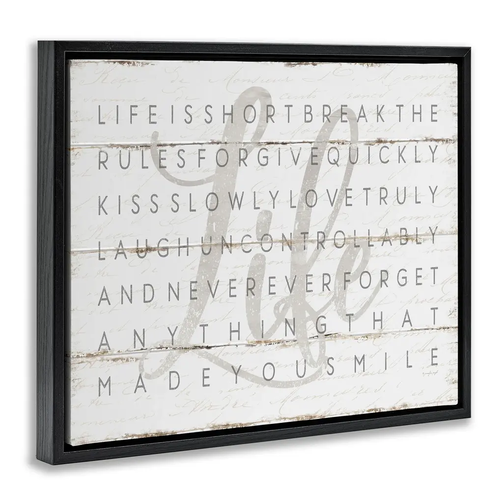 Stupell Life Is Short Smile Grey On White Planked Look Floater Frame - Off-White - 21 X 17 - Black