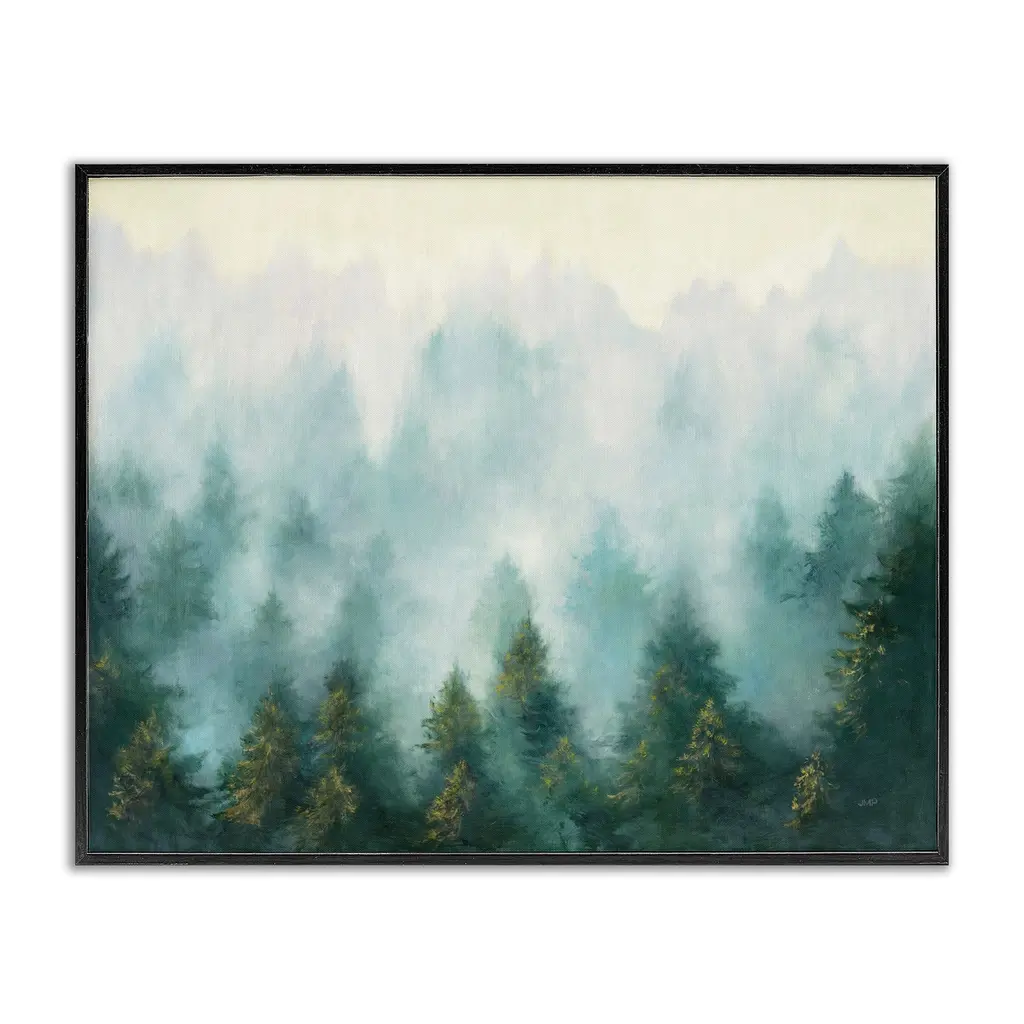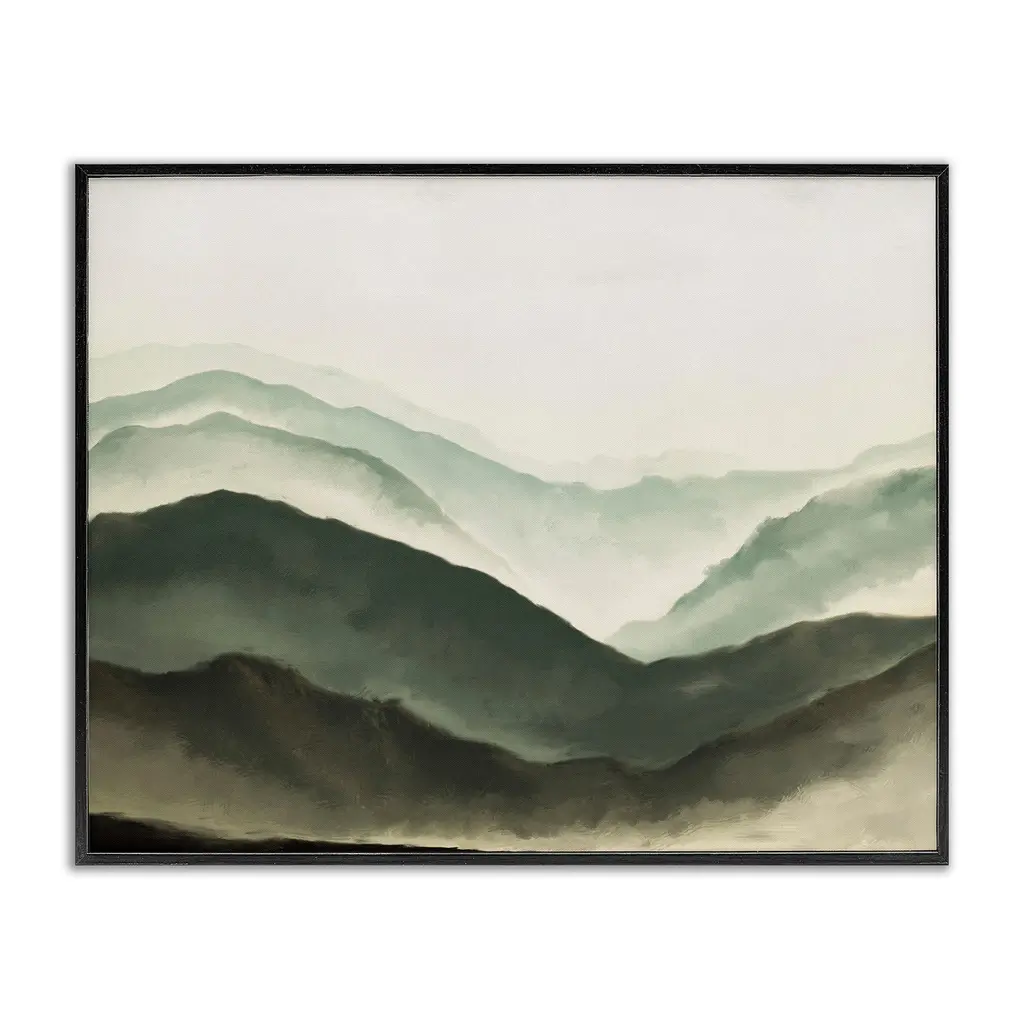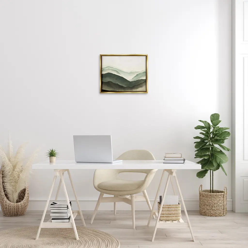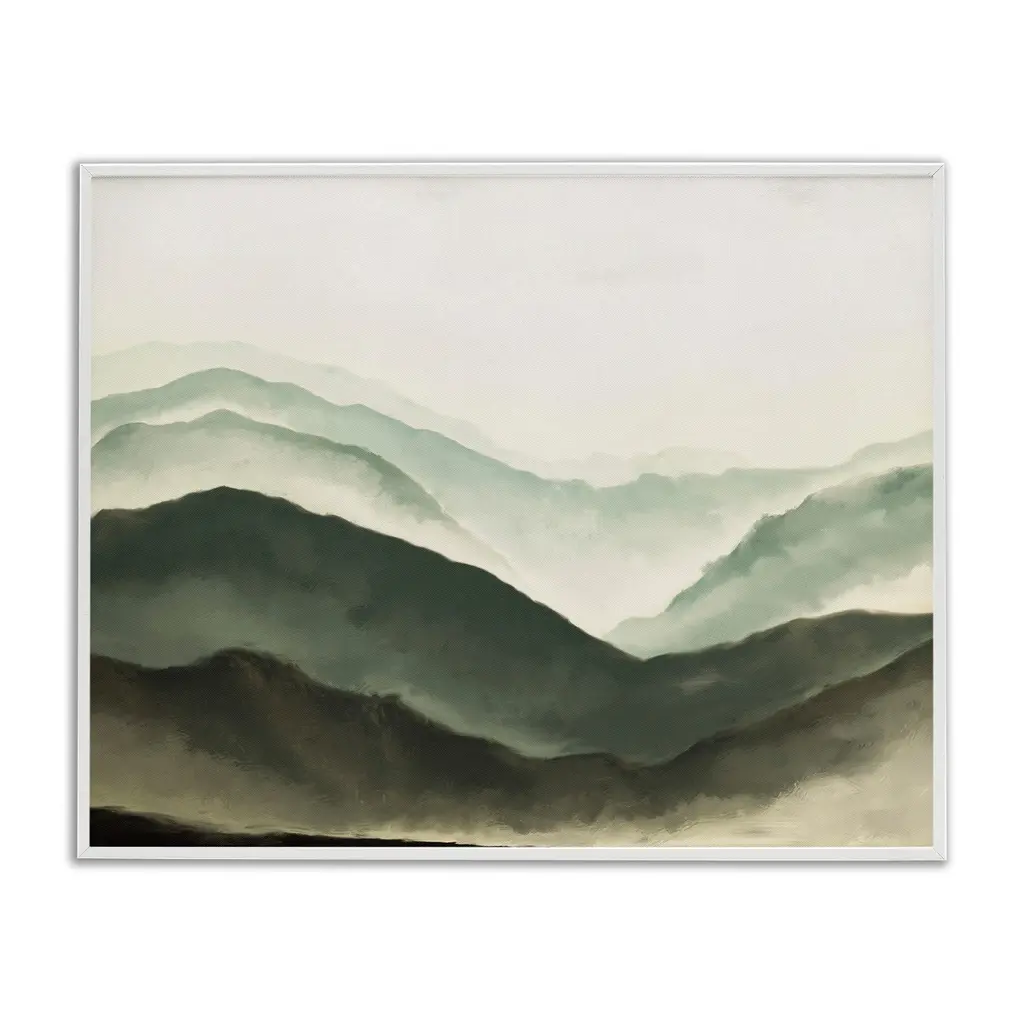 Stupell Misty Mountain Range Atmospheric Landscape Watercolor Painting Floater Frame - Green - 21 X 17 - Gold