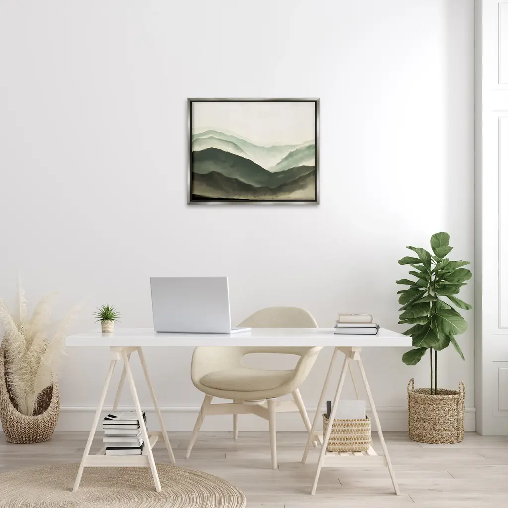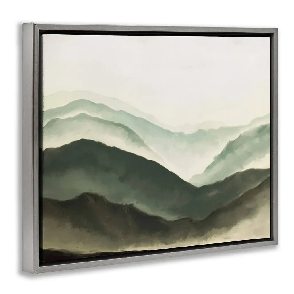 Stupell Misty Mountain Range Atmospheric Landscape Watercolor Painting Floater Frame - Green - 31 X 25 - Grey