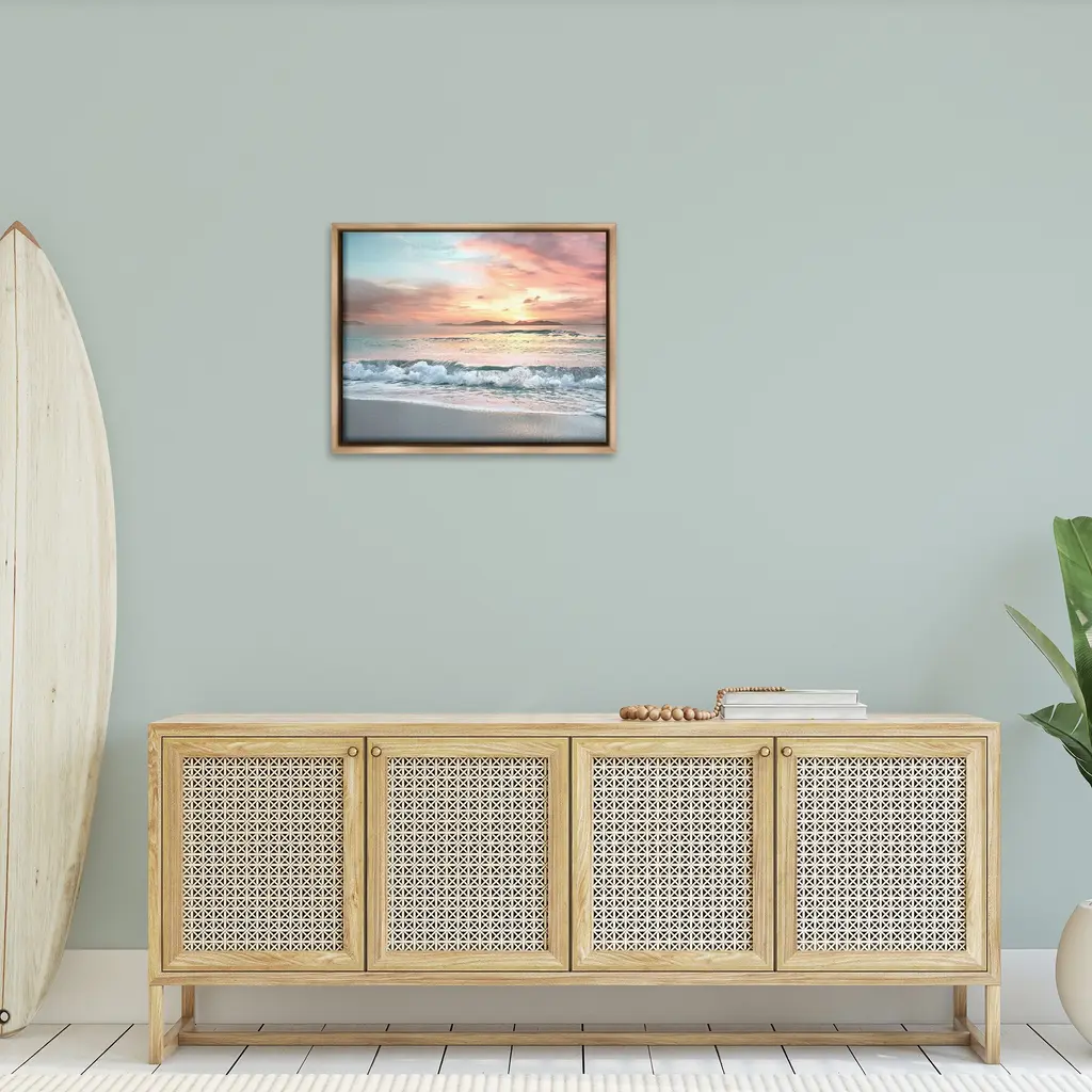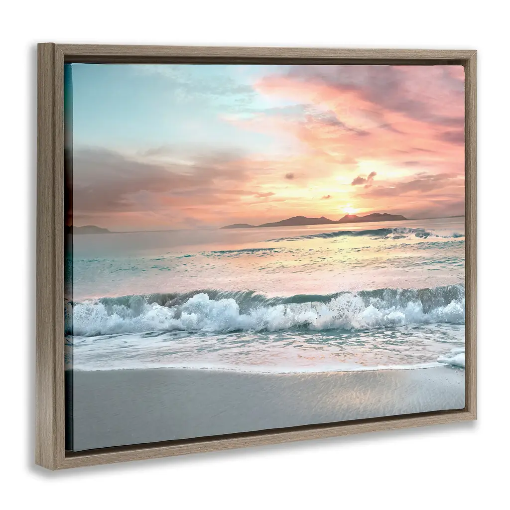 Stupell Morning Sunrise Beach Landscape Distant Mountains Rolling Tide Floater Frame - Orange - 31 X 25 - Brown