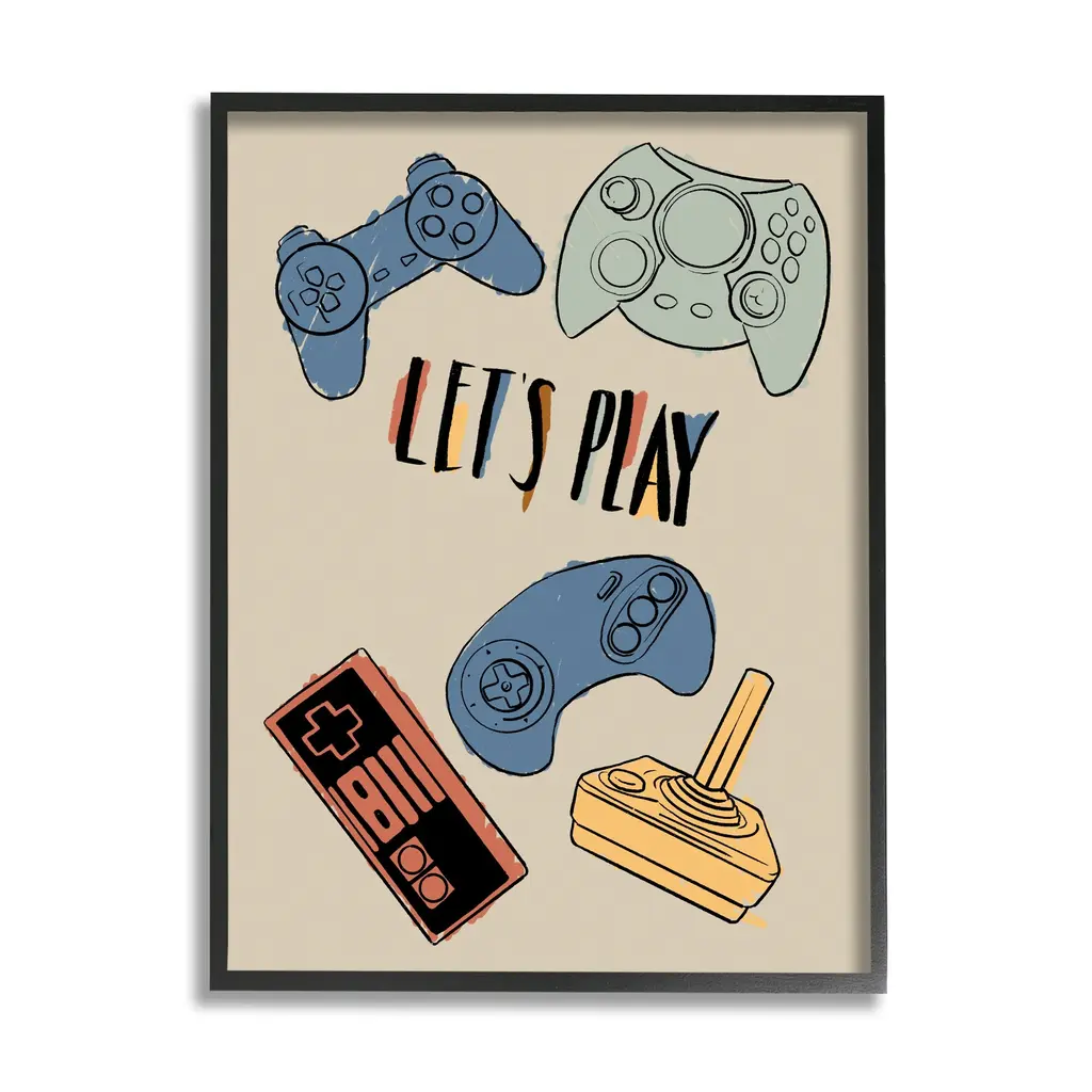 Stupell My Game Face Phrase Yellow Smiley Retro Controller Framed Wall Art - 24 X 30 - Black