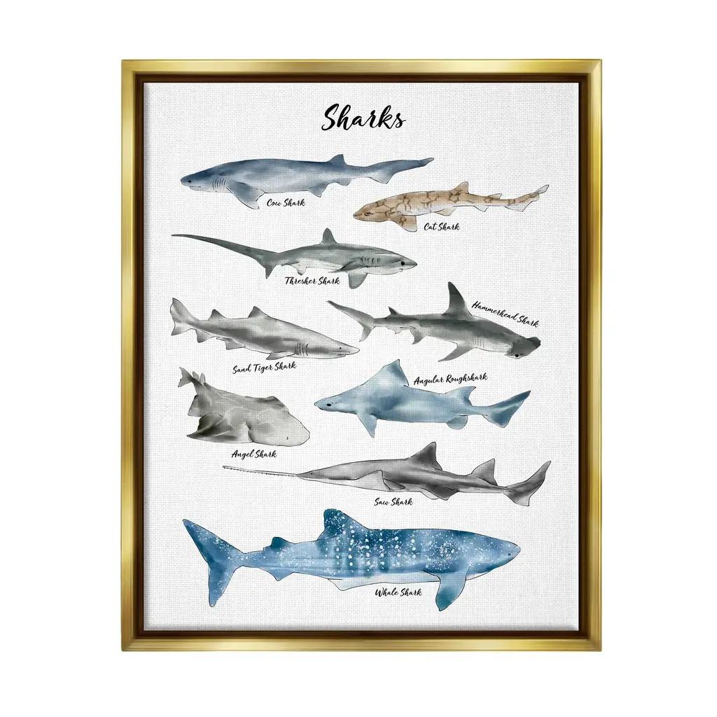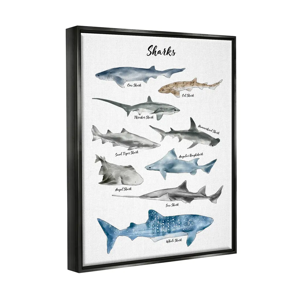 Stupell Nautical Shark Chart Watercolor Marine Animals Floater Frame - White - 24 X 30 - Black