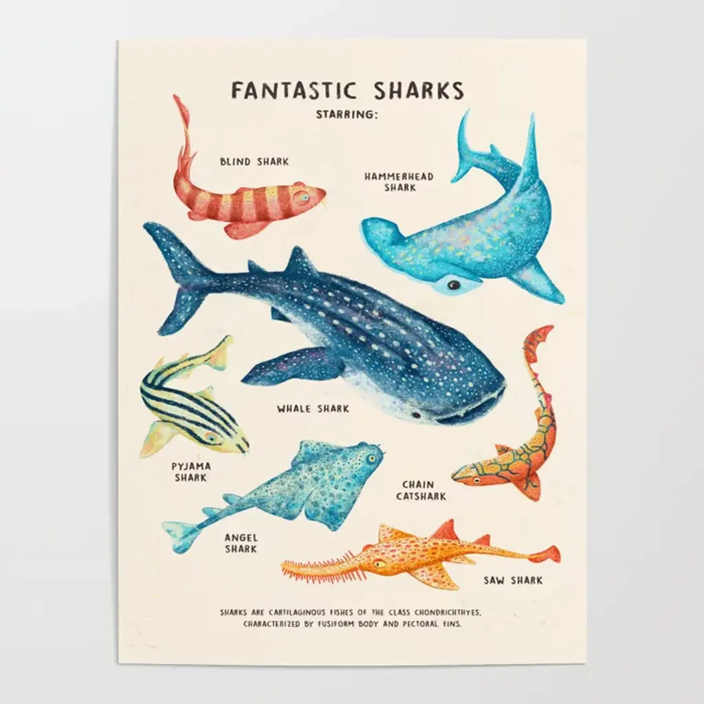 Stupell Nautical Shark Chart Watercolor Marine Animals Floater Frame - White - 24 X 30 - Grey