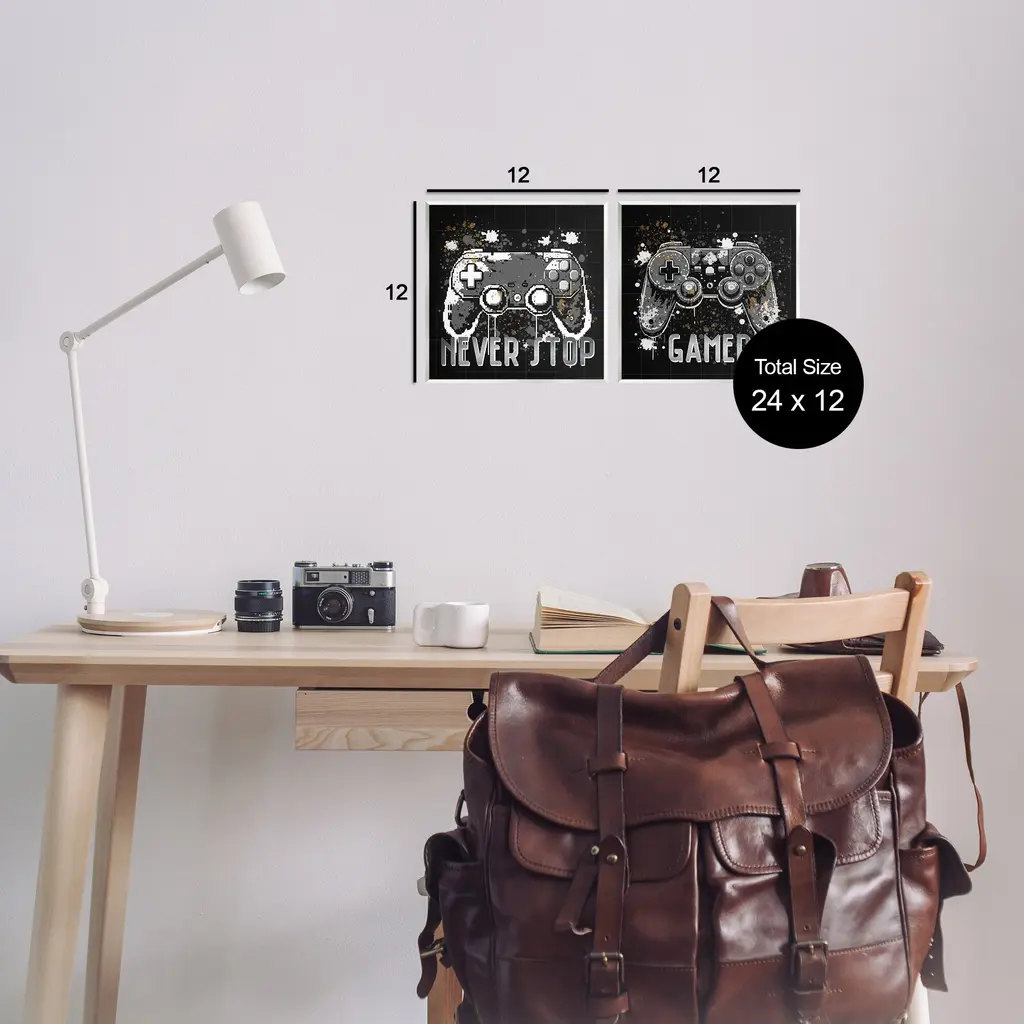 Stupell Never Stop Modern Gamer Wall Plaque Art Design By Kim Allen (Set Of 2) - 12 X 12