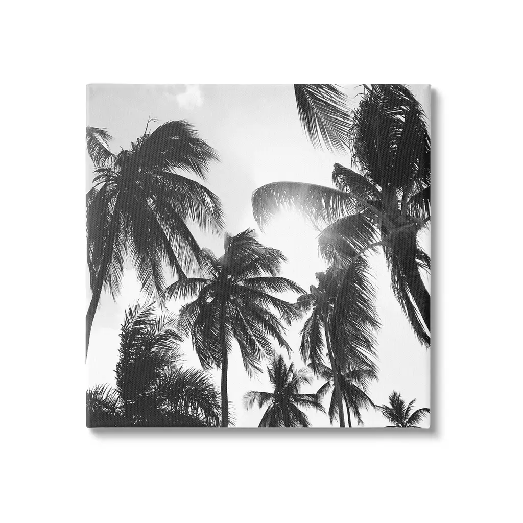 Stupell Palm Trees Skyline Black And White Photography Floater Frame - 21 X 17 - Grey